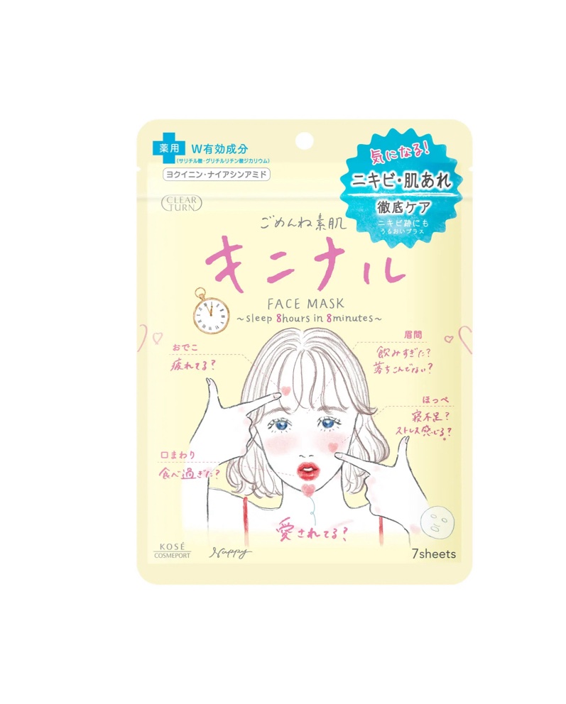 お肌が不安定な時の救世主🌟 クリアターン ごめんね素肌 キニナルマスク すぐ赤みが引いてお肌が落ち着いてくれるので、お肌がちょっとでも荒れそうな時にすぐ使っています🌟 アクネ菌を殺菌して、肌の炎症を抑えニキビを防ぎ、健やかななめらか肌に🌟