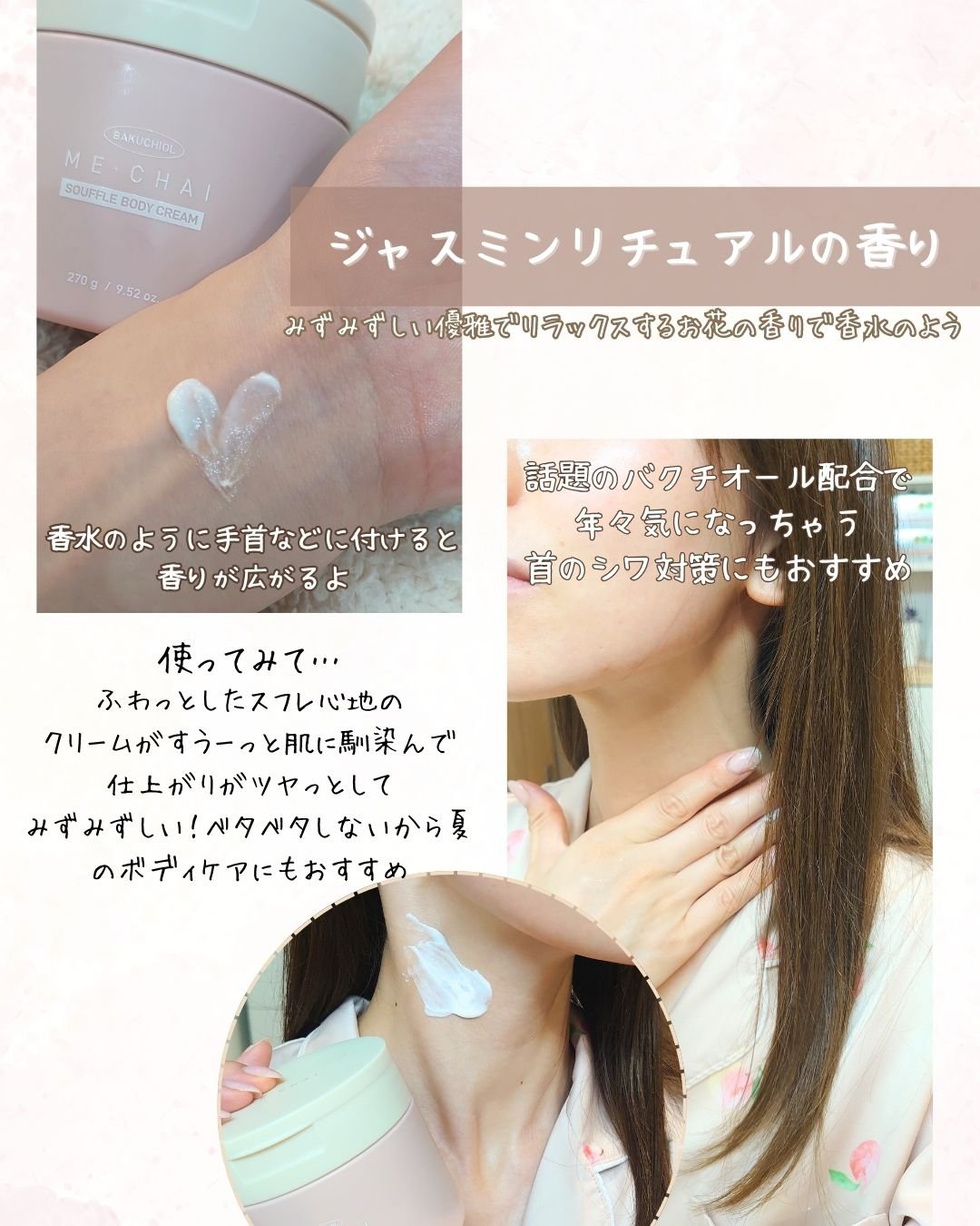 #PRMECHAI様@mechai_jpよりバクチオールスフレボディクリームをご提供いただきました🩷会社員Jちゃんプロデュース❣️MECHAIバクチオールスフレボディクリーム🤍MECHAIは美容クリエイターの韓国オンニAちゃん(Youtube...