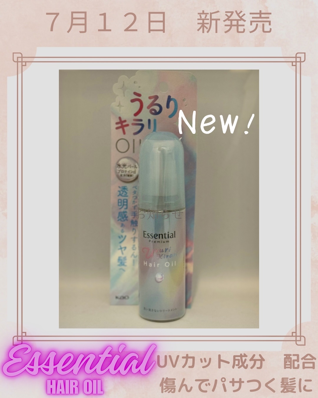 作る天使の輪🪽水光髪オイルEssentialPremiumうるりキラリオイル7.12発売♡EssentialPremiumよりサラツヤ髪を叶えるオイルが登場🪽濡れた髪にも乾いた髪にも使える!スタイリングにも使えて今っぽ髪がこれ一本✨UVカット...