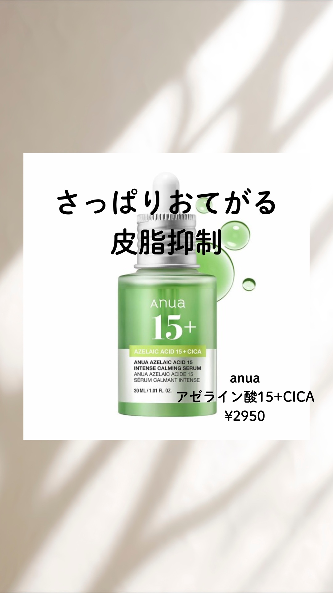 こんばんは!ティルです。今回はAnua(@anua.jp)の・アゼライン酸15インテンスカーミングセラムについてレビューするよ!どんな商品なのか気になってた人に参考になると嬉しい!Anuaアゼライン酸15インテンスカーミングセラム 30ml ...