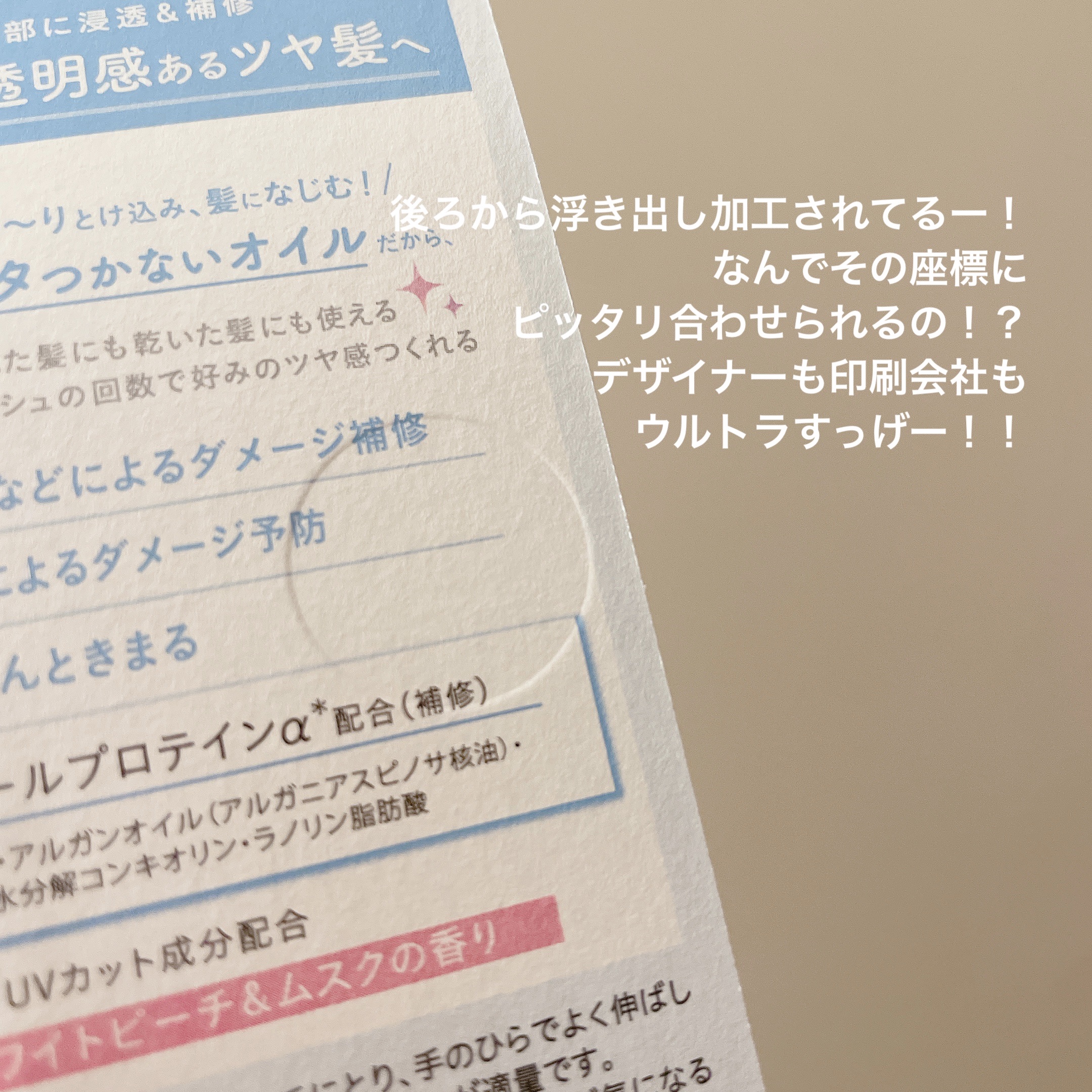 - 傷んで、パサつく髪に。 キラリオイルが髪内部に浸透&補修。 ベタつかず手触りするん!透明感あるツヤ髪へ。 〇紫外線・摩擦などによるダメージ補修 〇アイロンの熱によるダメージ予防 〇アイロンもするんときまる 〇水光パールプロテインα配合(補修)<スクワラン・アルガンオイル(アルガニアスピノサ核油)・加水分解コンキオリン・ラノリン脂肪酸> 〇UVカット成分配合 ○ときめくホワイトピーチ&ムスクの香り