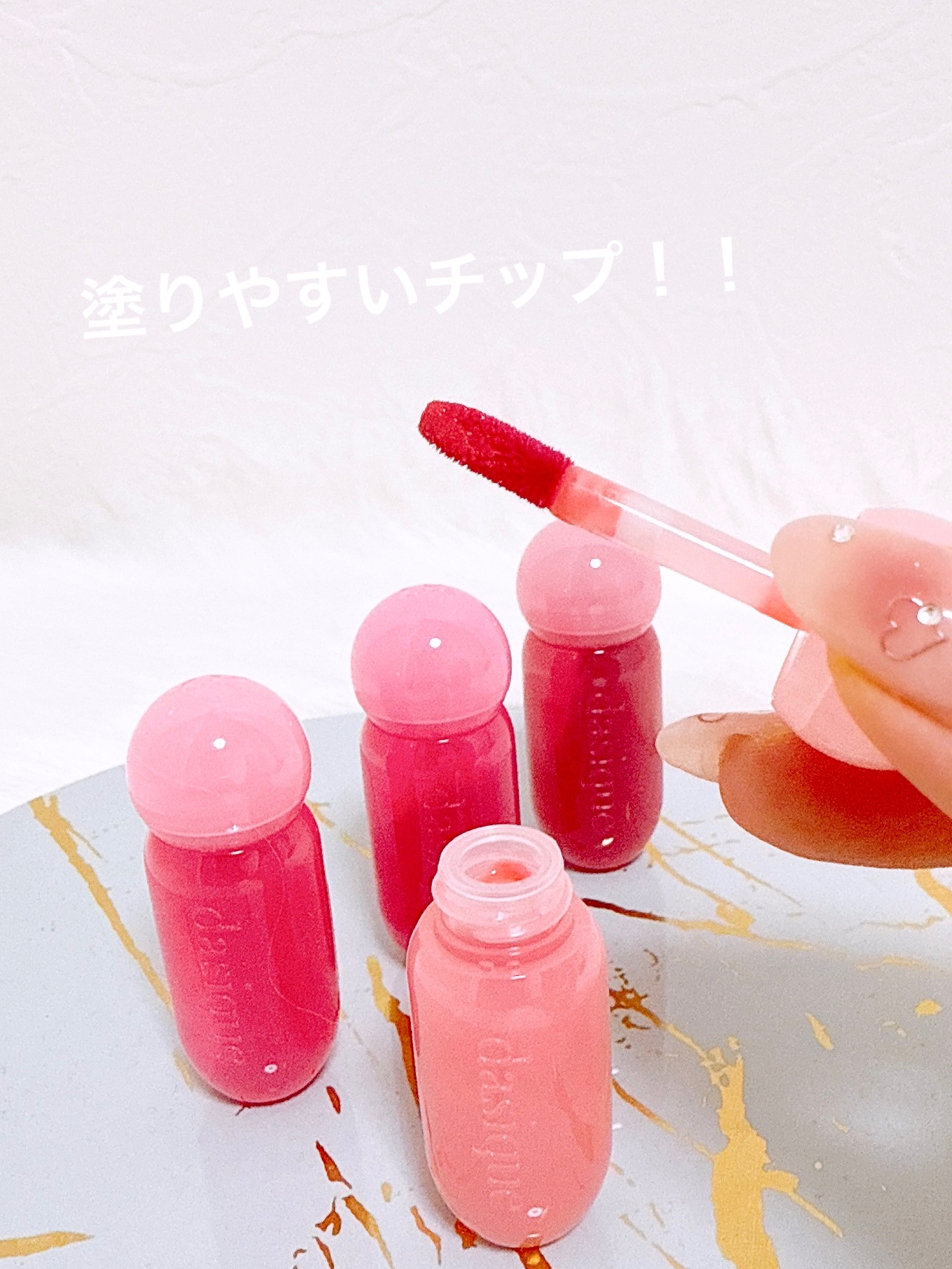 dasiqueから商品提供をいただきました。カラーは#10ベリースウィーティーを使いました。みずみずしいテクスチャーです。しっとりな使い心地で自分に合っていました。ベタベタしないで使いやすいです。コロンとした見た目で可愛く、手のひらにすっぽり...