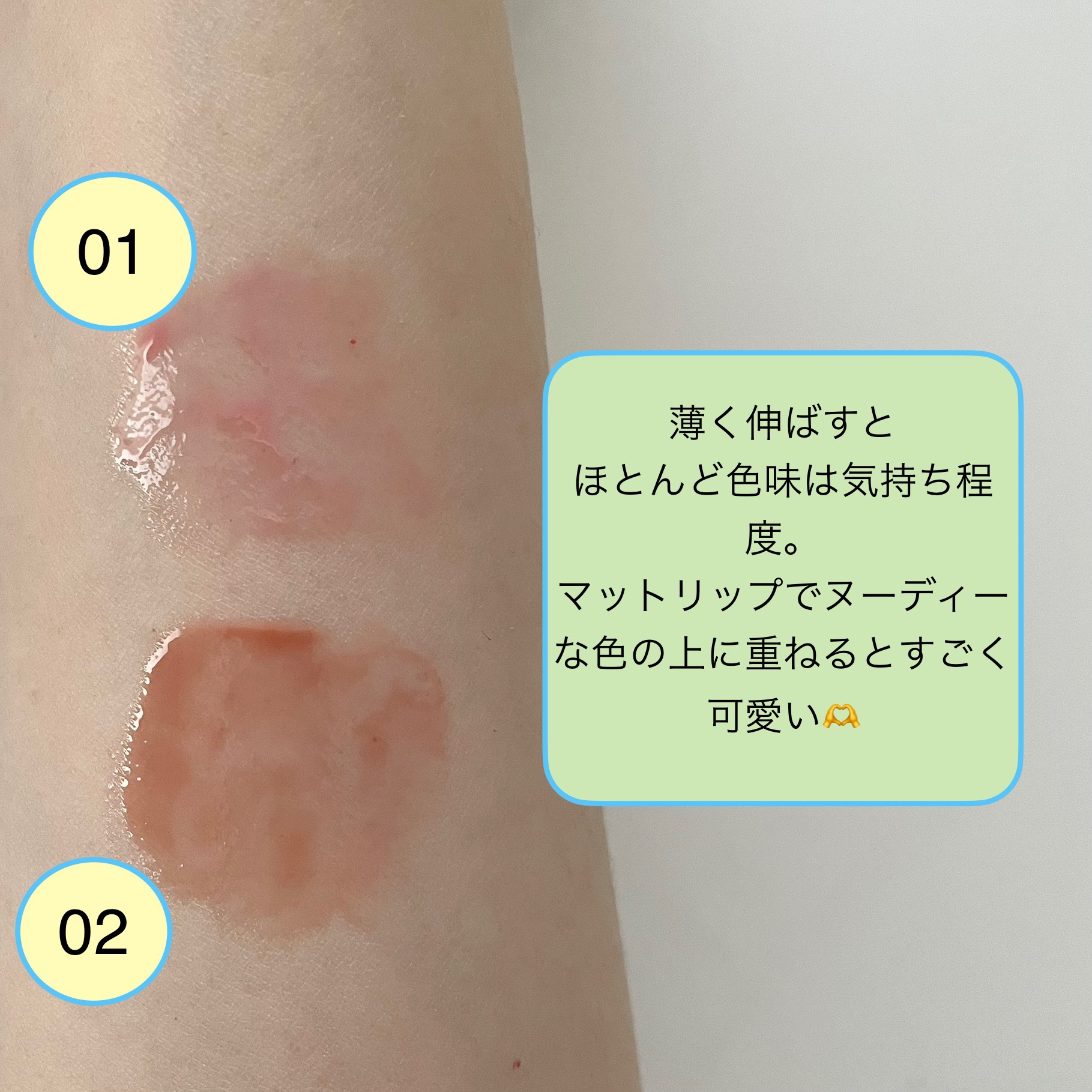◾️Fwee 3Dボリューミング グロス ¥1760(参考価格) 5.6g🧡ソルベ 30% 30%ですが結構発色します。コーラルに濃いピンクを混ぜたような感じ🩷ピーチ 70% 白み青みピンクです。唇に乗せると青みが少し増します。香り→甘いかお...