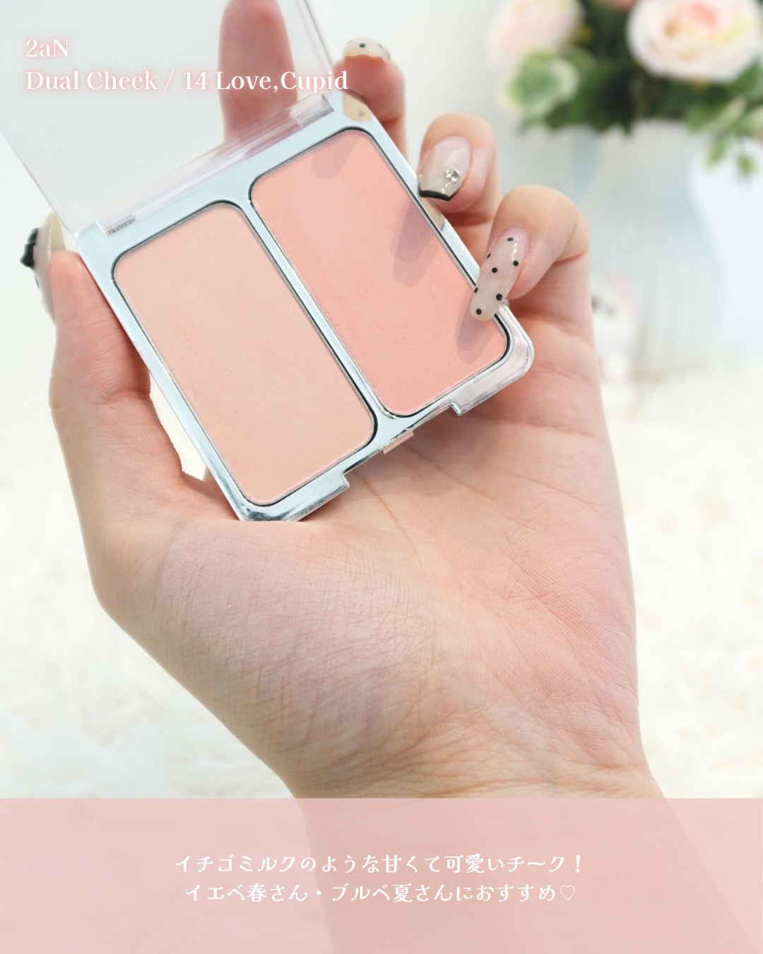 \全17色のチーク図鑑♡/2aN【DualCheek】を全色紹介するね🪞✨可愛いカラーが揃ってて、ふんわり色づくのに血色感はしっかり♡ひと塗りで「かわいい」を更新してくれる万能チークだよ🫶🏻💘☑さらっと軽やかな粉質で密着度◎☑ほんのり透け感が...