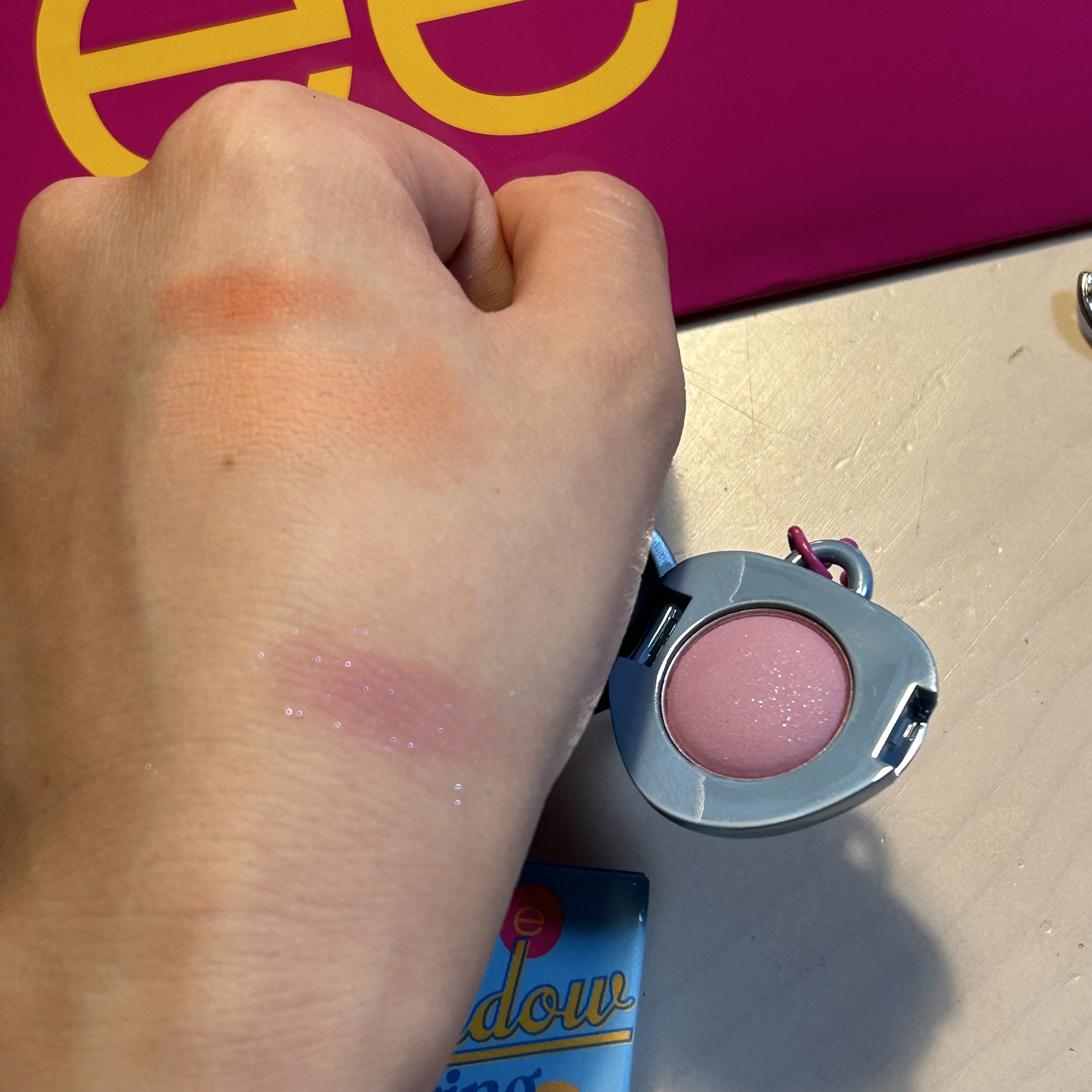 fweeフィーポケットアイパレットEP03ストロベリーホイップ思ったより、淡かった🤣人気のfwee🩷#ヨルちゃんがプレゼントしてくれたfweeが可愛くて別色をQoo10でGET(*˙ω˙*)وグッ!しかし、思ったより、ストロベリーホイップは...