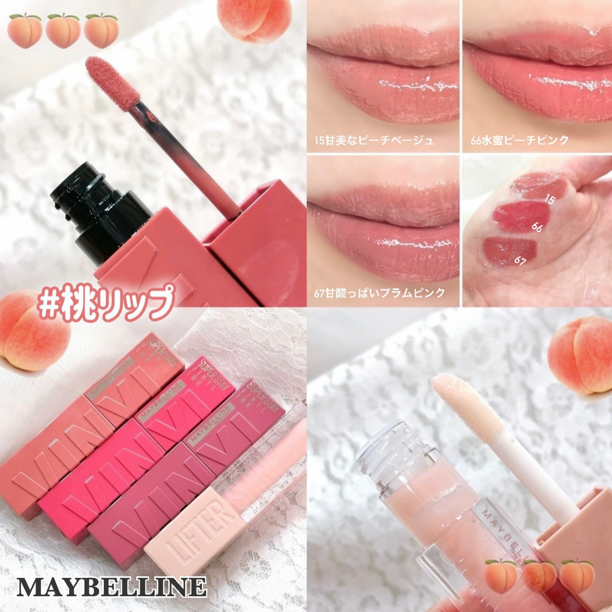 落ちないリップから#桃リップ登場🍑メイベリン💄メイベリンニューヨークSPステイヴィニルインク15(甘美なピーチベージュ) 💄メイベリンニューヨークSPステイヴィニルインク67(甘酸っぱいプラムピンク)💄メイベリンニューヨークSPステイヴィニル...