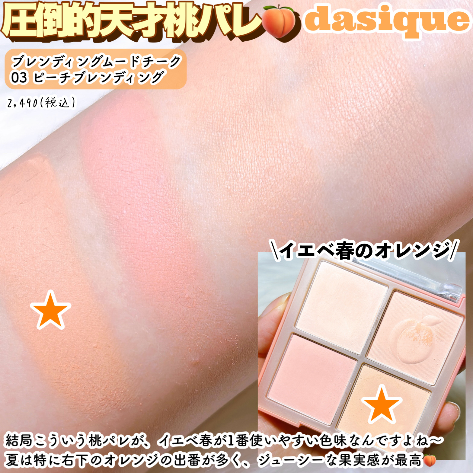07 ミルクラテ ★★★★★ 私のメイクにおいてこのパレットなしでは語れない、そんな人生コスメ。パッと見どこにでもありそうな淡いベージュなのに、この質感と仕上がりはdasiqueのミルクラテでしか作れない…💓 23 サマーコーラル ★★★★☆ とてもとてもとっても大好き!若干青み寄りのコーラルは、2ndがブルベ冬の私にぴったり!高発色でパキッとしたカラーが可愛い18色です💓 22 グレープフルーツシャーベット ★★★☆☆ アイスクリームシリーズから、日本限定で発売されたパレット。ピンク〜オレンジまで一通り揃う、淡め得意な方にはドンピシャだと思います!
