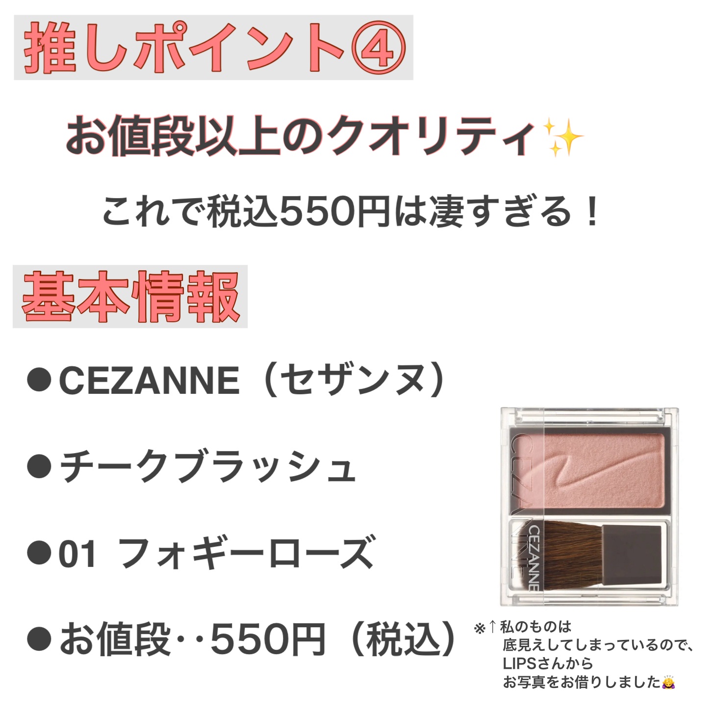 CEZANNEチークブラッシュは、パウダーだけどしっとり質感で自然に頬になじむ血色チーク✨✨ 01フォギーローズは、大人の血色感を演出するローズピンクカラー🌹🩷 程よい血色感で肌馴染みのいいピンクがお気に入り🌸