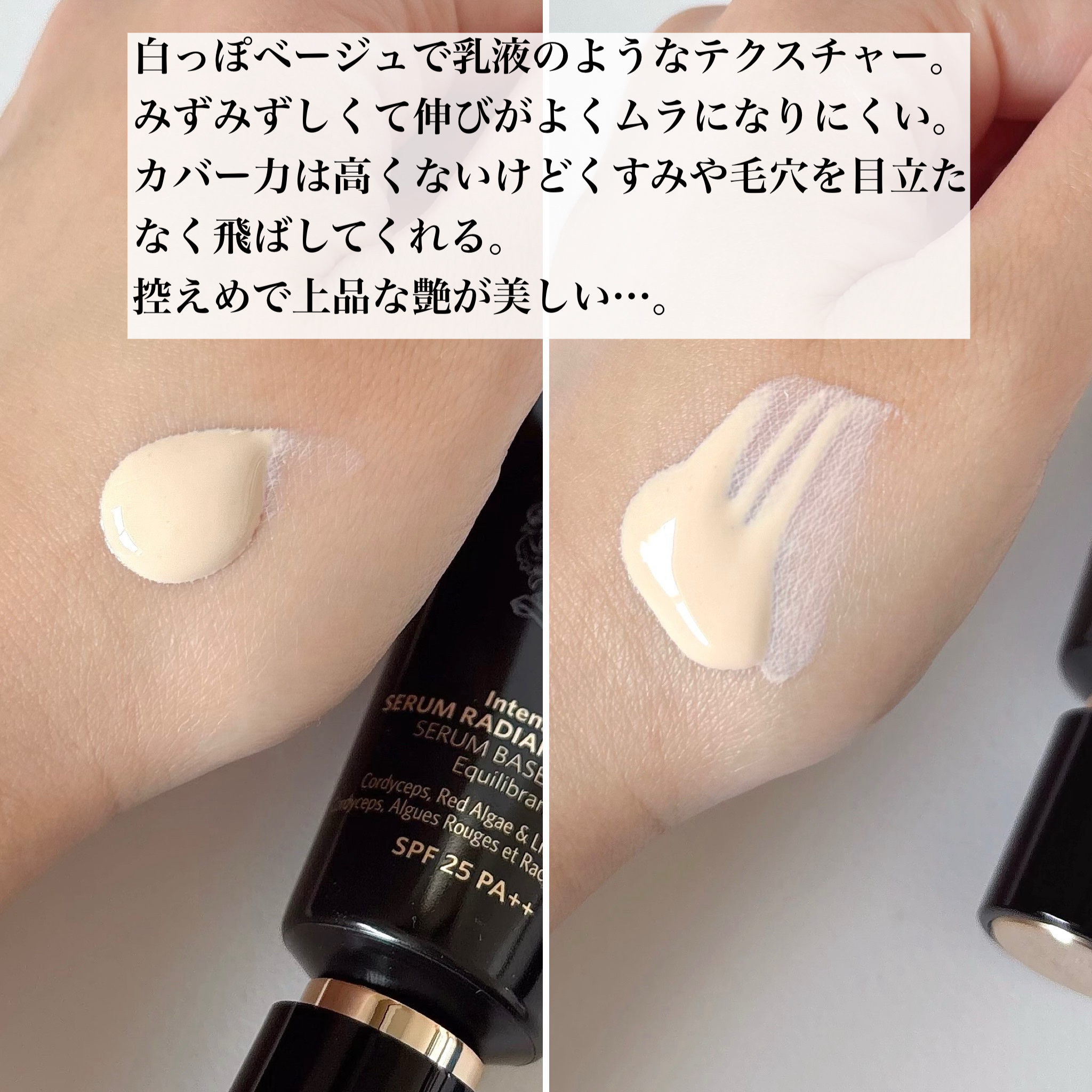 - SPF 25 (PA++) 肌を守りながら、⽣き⽣きとしたツヤと透明感をトーンアップする美容液プライマー。 プライマーにも冬虫夏草と高麗人参エキスを配合し、ツヤとうるおい、トーンアップを叶え、ファンデーションの仕上がりをより一層美しく仕上げる美容液プライマーです。 ※「インテンシブ スキン セラム ラディアンス プライマー」は「インテンシブ セラム ラディアンス プライマー」に名称変更となりました。