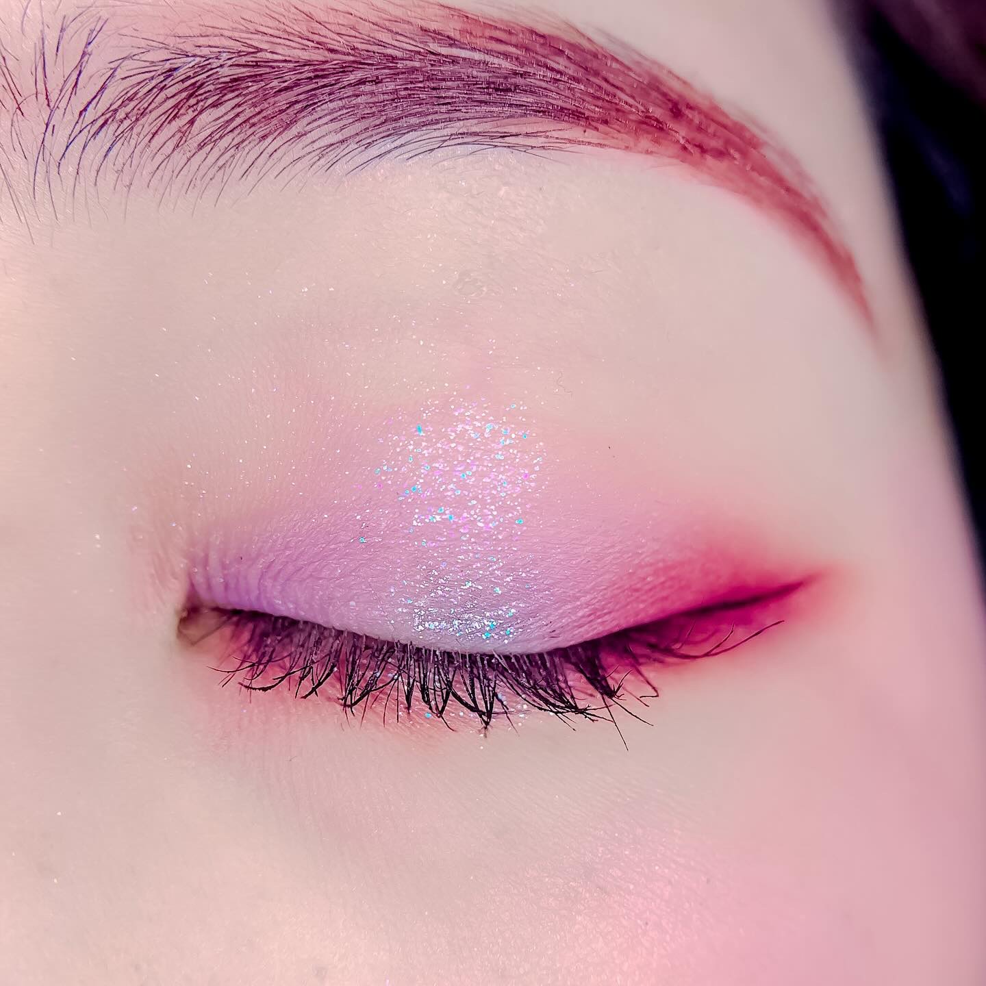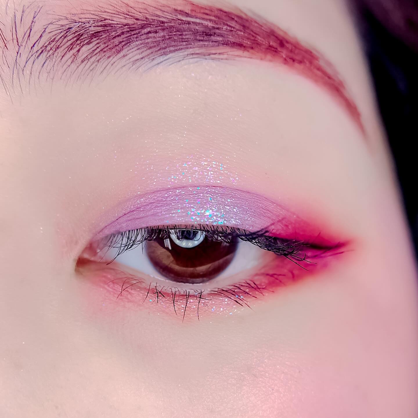 ピンクにグレージュも良いですね👌💗 今日は可愛らしい感じにしてみました💕 上下瞼黒目〜目頭側にラメを塗ってキラキラさせております🤩 目尻はマットのピンクを濃いめに重ねて💗 グレージュのアイライナーと相性◎