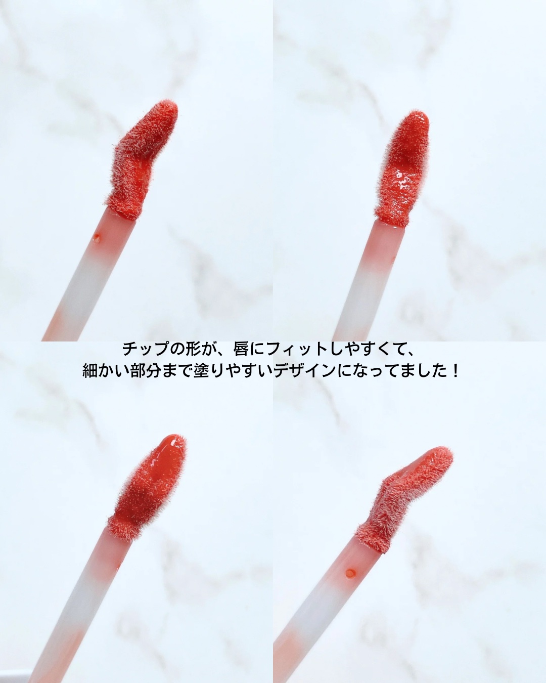 | ちゅるんとしたテクスチャで唇にのせるとさらっと仕上がり、 ベタつかないし塗ってて嫌な感じもしないのに潤いはある! | 詳細を見る | ||