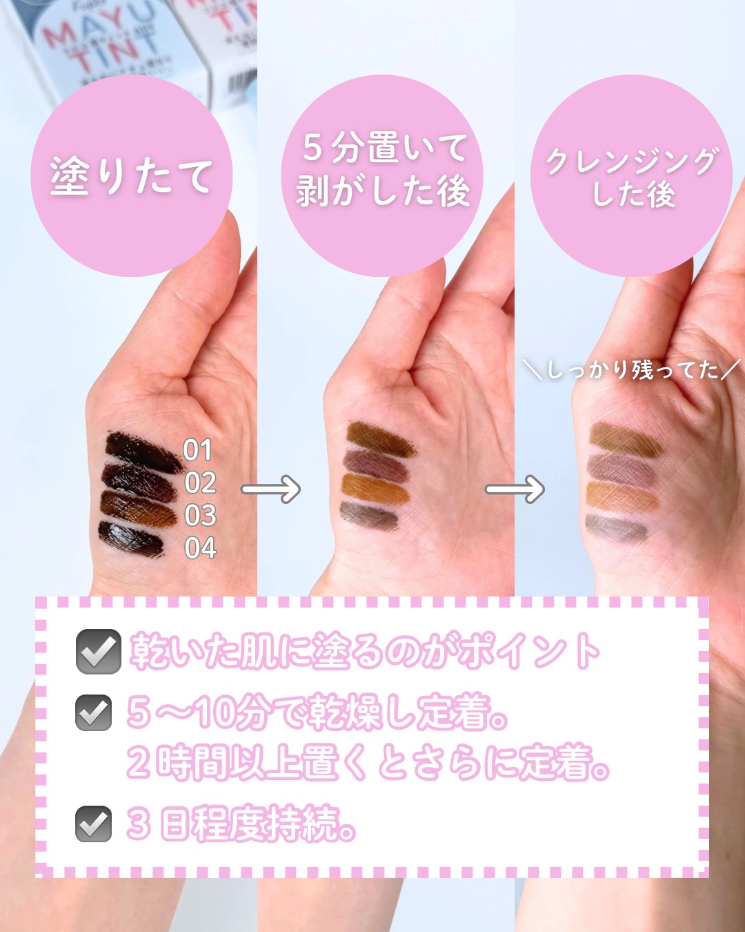 | 朝忙しい時も寝起きでも綺麗な眉のままなので、お泊りでも安心!3日ほど持続するので嬉しい! | 詳細を見る | |