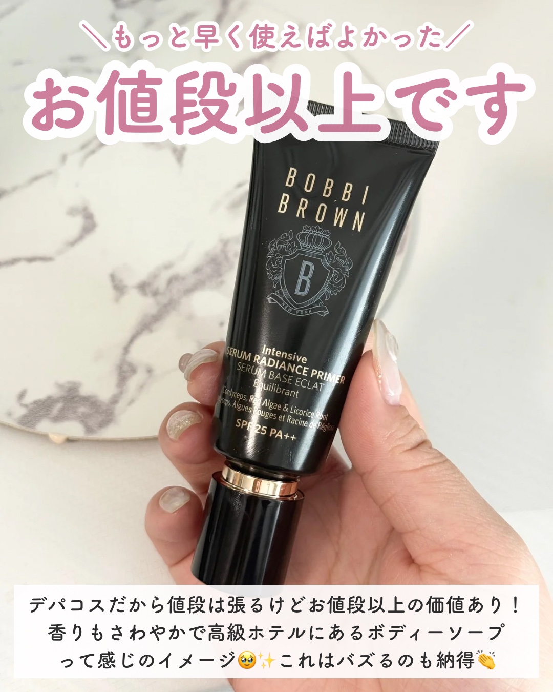 @bobbibrownjapan@cchannel_lemonsquareSNSでバズったボビイブラウンのインテンシブセラムラディアンスプライマー✨たっぷりの美容成分配合で濃厚美容液プライマー💁♀️保湿力が高く上品なツヤ感に仕上げてくれると...