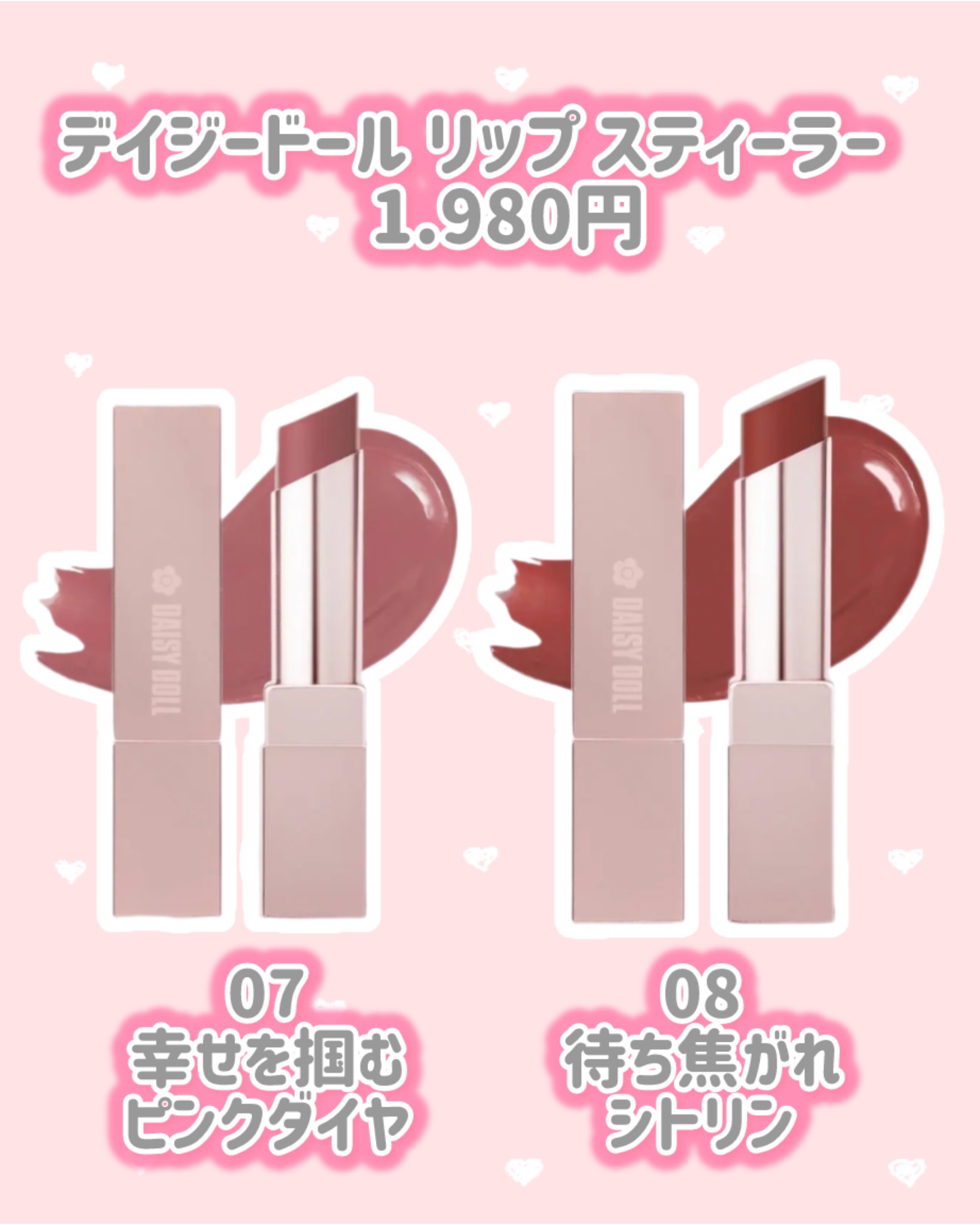 【とろける宝石ツヤリップ💎💄デイジードール新色リップ】DAISYDOLL様よりいただきました♡ツヤ感が美しいリップスティーラーの新色を2色レビューするよ💭♡••••♡DAISYDOLLbyMARYQUANTリップスティーラー・07幸せを掴むピ...