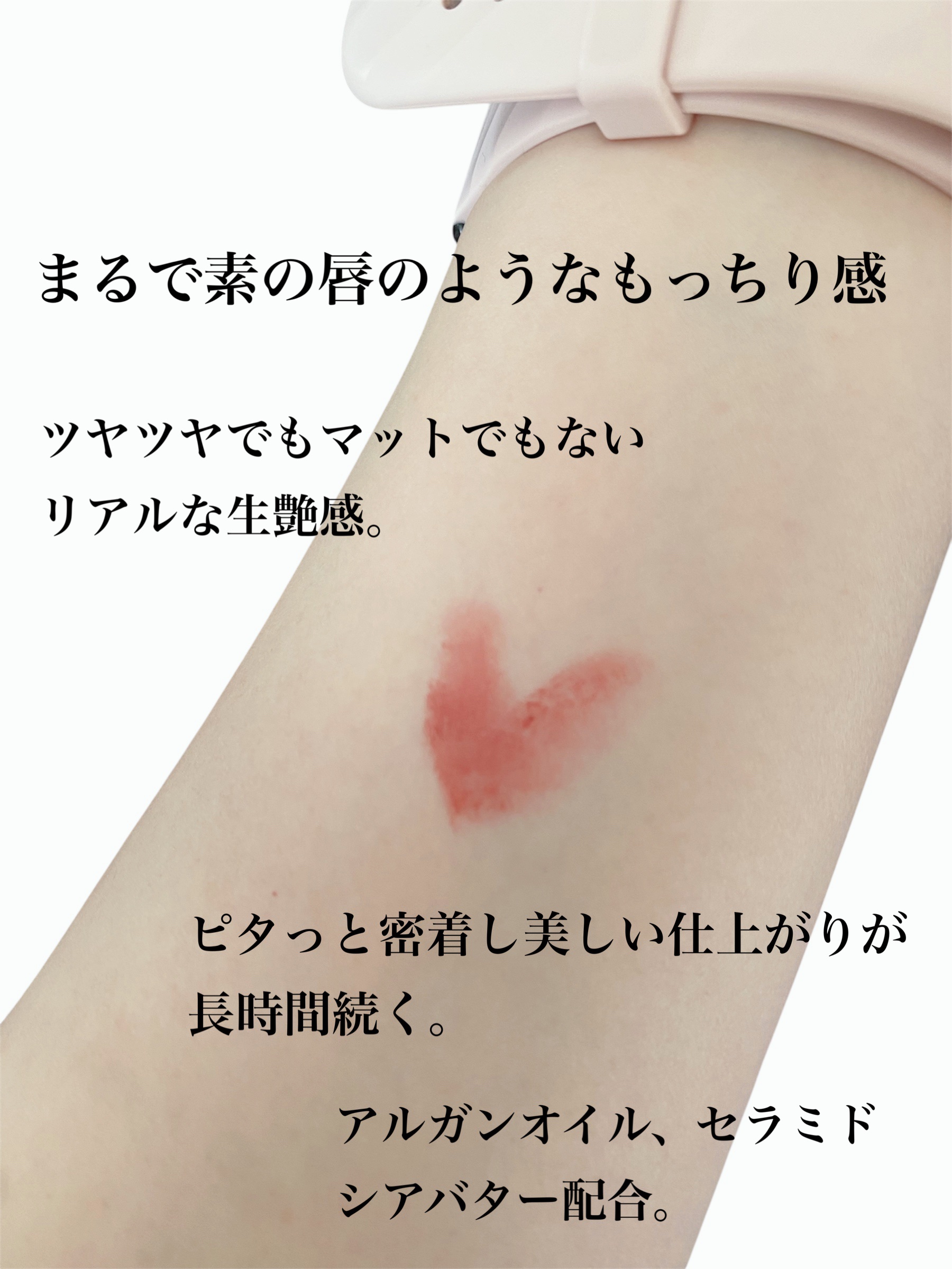 - <01 たまゆらベージュ> リンゴ酸ジイソステアリル、テトラエチルヘキサン酸ペンタエリスリチル、トリイソステアリン酸ポリグリセリル-2、水添ポリイソブテン、カオリン、合成ワックス、ビスジグリセリルポリアシルアジペート-2、ワセリン、マイクロクリスタリンワックス、キャンデリラロウ、水添ポリデセン、アルガニアスピノサ核油、シア脂、セラミドNP、セスキイソステアリン酸ソルビタン、(HDI/トリメチロールヘキシルラクトン)クロスポリマー、硫酸Ba、ラウロイルリシン、水酸化Al、シリカ、トコフェロール、イソステアリン酸デキストリン、トリメチルシロキシケイ酸、ジメチコン、酸化チタン、酸化鉄、黄5、黄4 <02 木星ブリック> リンゴ酸ジイソステアリル、テトラエチルヘキサン酸ペンタエリスリチル、トリイソステアリン酸ポリグリセリル-2、水添ポリイソブテン、カオリン、合成ワックス、ビスジグリセリルポリアシルアジペート-2、ワセリン、マイクロクリスタリンワックス、キャンデリラロウ、水添ポリデセン、アルガニアスピノサ核油、シア脂、セラミドNP、セスキイソステアリン酸ソルビタン、(HDI/トリメチロールヘキシルラクトン)クロスポリマー、硫酸Ba、ラウロイルリシン、水酸化Al、トコフェロール、シリカ、イソステアリン酸デキストリン、トリメチルシロキシケイ酸、ジメチコン、酸化チタン、酸化鉄、黄4、赤202、赤201 <07 杏仁アールグレイ> リンゴ酸ジイソステアリル、テトラエチルヘキサン酸ペンタエリスリチル、トリイソステアリン酸ポリグリセリル-2、水添ポリイソブテン、カオリン、合成ワックス、ビスジグリセリルポリアシルアジペート-2、ワセリン、マイクロクリスタリンワックス、キャンデリラロウ、水添ポリデセン、アルガニアスピノサ核油、シア脂、セラミドNP、セスキイソステアリン酸ソルビタン、(HDI/トリメチロールヘキシルラクトン)クロスポリマー、硫酸Ba、水酸化Al、シリカ、テトライソステアリン酸ポリグリセリル-2、ラウロイルリシン、トコフェロール、イソステアリン酸デキストリン、トリメチルシロキシケイ酸、ジメチコン、酸化チタン、酸化鉄、黄4、赤202、黄5 <09 ラズベリーミルク> リンゴ酸ジイソステアリル、テトラエチルヘキサン酸ペンタエリスリチル、トリイソステアリン酸ポリグリセリル-2、水添ポリイソブテン、カオリン、合成ワックス、ビスジグリセリルポリアシルアジペート-2、ワセリン、マイクロクリスタリンワックス、キャンデリラロウ、水添ポリデセン、アルガニアスピノサ核油、シア脂、セラミドNP、セスキイソステアリン酸ソルビタン、(HDI/トリメチロールヘキシルラクトン)クロスポリマー、硫酸Ba、水酸化Al、テトライソステアリン酸ポリグリセリル-2、ラウロイルリシン、トコフェロール、シリカ、イソステアリン酸デキストリン、トリメチルシロキシケイ酸、ジメチコン、酸化チタン、酸化鉄、黄5、赤202、黄4 <03 そよそよゴースト> リンゴ酸ジイソステアリル、テトラエチルヘキサン酸ペンタエリスリチル、トリイソステアリン酸ポリグリセリル-2、水添ポリイソブテン、カオリン、合成ワックス、ビスジグリセリルポリアシルアジペート-2、ワセリン、マイクロクリスタリンワックス、キャンデリラロウ、水添ポリデセン、アルガニアスピノサ核油、シア脂、セラミドNP、セスキイソステアリン酸ソルビタン、(HDI/トリメチロールヘキシルラクトン)クロスポリマー、硫酸Ba、ラウロイルリシン、水酸化Al、シリカ、トコフェロール、イソステアリン酸デキストリン、トリメチルシロキシケイ酸、ジメチコン、酸化チタン、酸化鉄、黄4、赤202、青1、黄5 <04 リスクテイカー> リンゴ酸ジイソステアリル、テトラエチルヘキサン酸ペンタエリスリチル、トリイソステアリン酸ポリグリセリル-2、水添ポリイソブテン、カオリン、合成ワックス、ビスジグリセリルポリアシルアジペート-2、ワセリン、マイクロクリスタリンワックス、キャンデリラロウ、水添ポリデセン、アルガニアスピノサ核油、シア脂、セラミドNP、セスキイソステアリン酸ソルビタン、(HDI/トリメチロールヘキシルラクトン)クロスポリマー、硫酸Ba、水酸化Al、ラウロイルリシン、シリカ、トコフェロール、イソステアリン酸デキストリン、トリメチルシロキシケイ酸、ジメチコン、酸化鉄、酸化チタン、黄4、青1、赤202 <05 アーチャークイーン> リンゴ酸ジイソステアリル、テトラエチルヘキサン酸ペンタエリスリチル、トリイソステアリン酸ポリグリセリル-2、水添ポリイソブテン、カオリン、合成ワックス、ビスジグリセリルポリアシルアジペート-2、ワセリン、マイクロクリスタリンワックス、キャンデリラロウ、水添ポリデセン、アルガニアスピノサ核油、シア脂、セラミドNP、セスキイソステアリン酸ソルビタン、(HDI/トリメチロールヘキシルラクトン)クロスポリマー、硫酸Ba、水酸化Al、ラウロイルリシン、シリカ、トコフェロール、イソステアリン酸デキストリン、