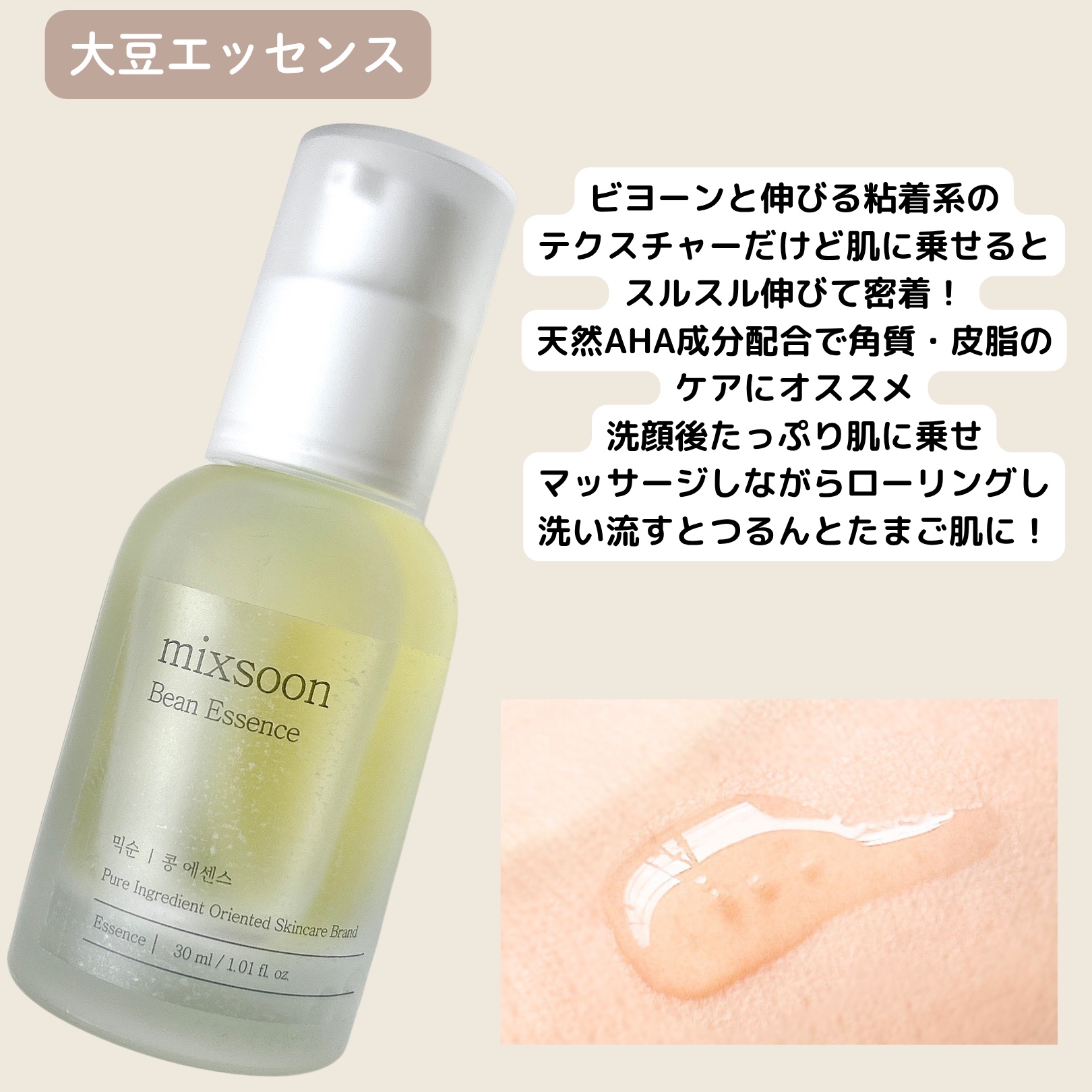 #PRmixsoonの人気商品4種🫘大豆エッセンスは糸を引くくらいとろ〜っとしたテクスチャーの発酵エッセンス。水分感たっぷりで肌馴染みよく不思議とベタつかずもちもち。キメが整ってふっくら。ツボクサエッセンスはシャバシャバなお水見たいなテクスチ...