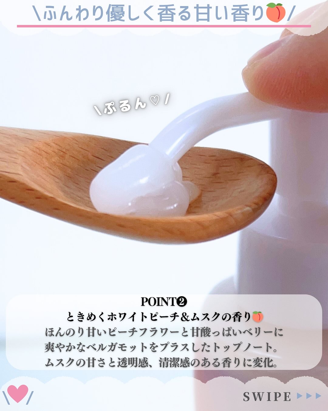- うねり・広がる髪に。うるおい補給&パック。 翌朝もぷるんとまとまり髪つづくジェリーミルク。 〇乾燥によるうねり・広がりをケア 〇紫外線・摩擦などによるダメージ補修 〇ドライヤー速乾/ドライヤー・アイロンの熱によるダメージ予防 〇翌朝のアイロンもするんときまる 〇保水ミルキープロテイン配合(保湿)<加水分解コラーゲン・乳酸・ローヤルゼリーエキス・ジラウラミドグルタミドリシンNa> ○ときめくホワイトピーチ&ムスクの香り