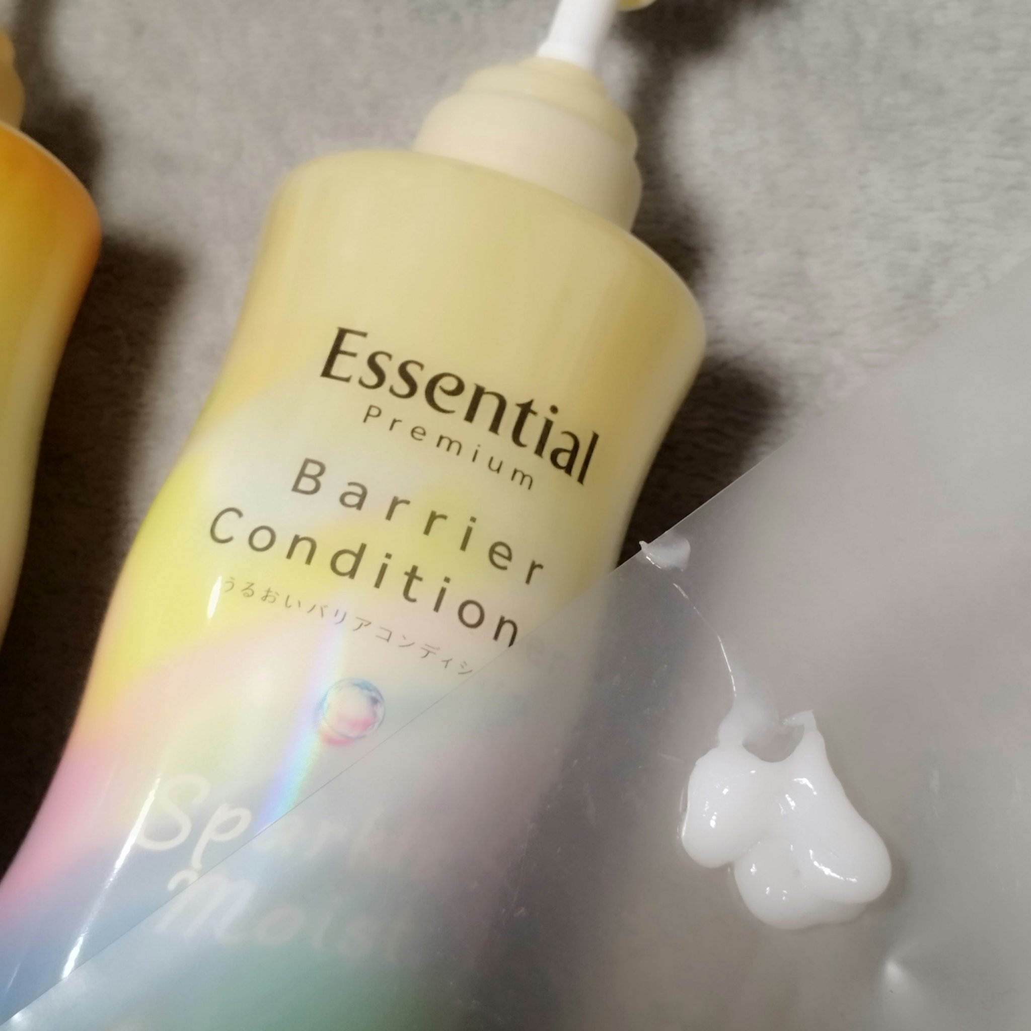 エッセンシャルプレミアムバリアシャンプー・コンディショナースパークルモイスト♡ハイダメージ髪向けのアイテム✨洗い流した瞬間から、驚きのとろとろ感。カラーやブリーチで傷んだ髪内部を補修して、うるおいで満たしてくれるそう。シャンプーは泡立ち良く、...