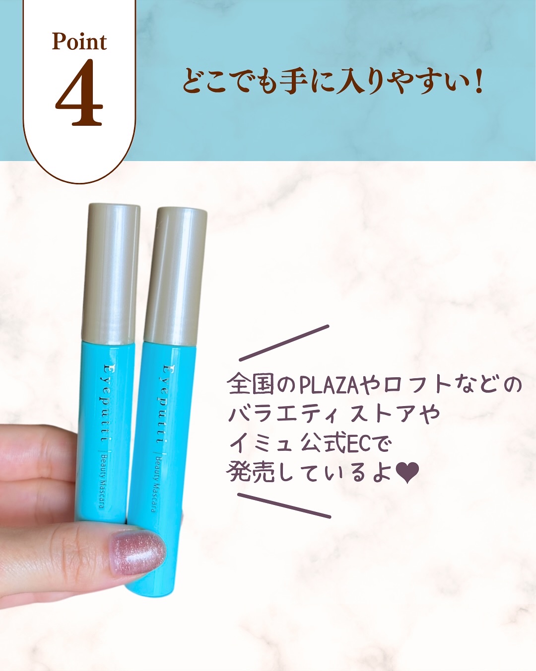 - 「カールキープカの高さ」と「にじみにくさ」にとことんこだわった、ひとえ・奥ぶたえ用マスカラです。 【瞬間ロック成分】×【形状記憶ポリマー】で、まぶたに埋もれずカールをキープ。 汗・涙、皮脂、こすれに強く1日中にじみません*。 ひとえ・奥ぶたえ用カーラー「アイプチ ビューティ フィットカーラー」と一緒に使用することで、ひとえ・奥ぶたえをパッチリ見せるこだわりのカールを長時間キープできます。 カール力とにじみにくさを追求した処方のため、メイクオフには、ポイントメイクアップリムーバーの使用がおすすめです。 *効果には個人差があります