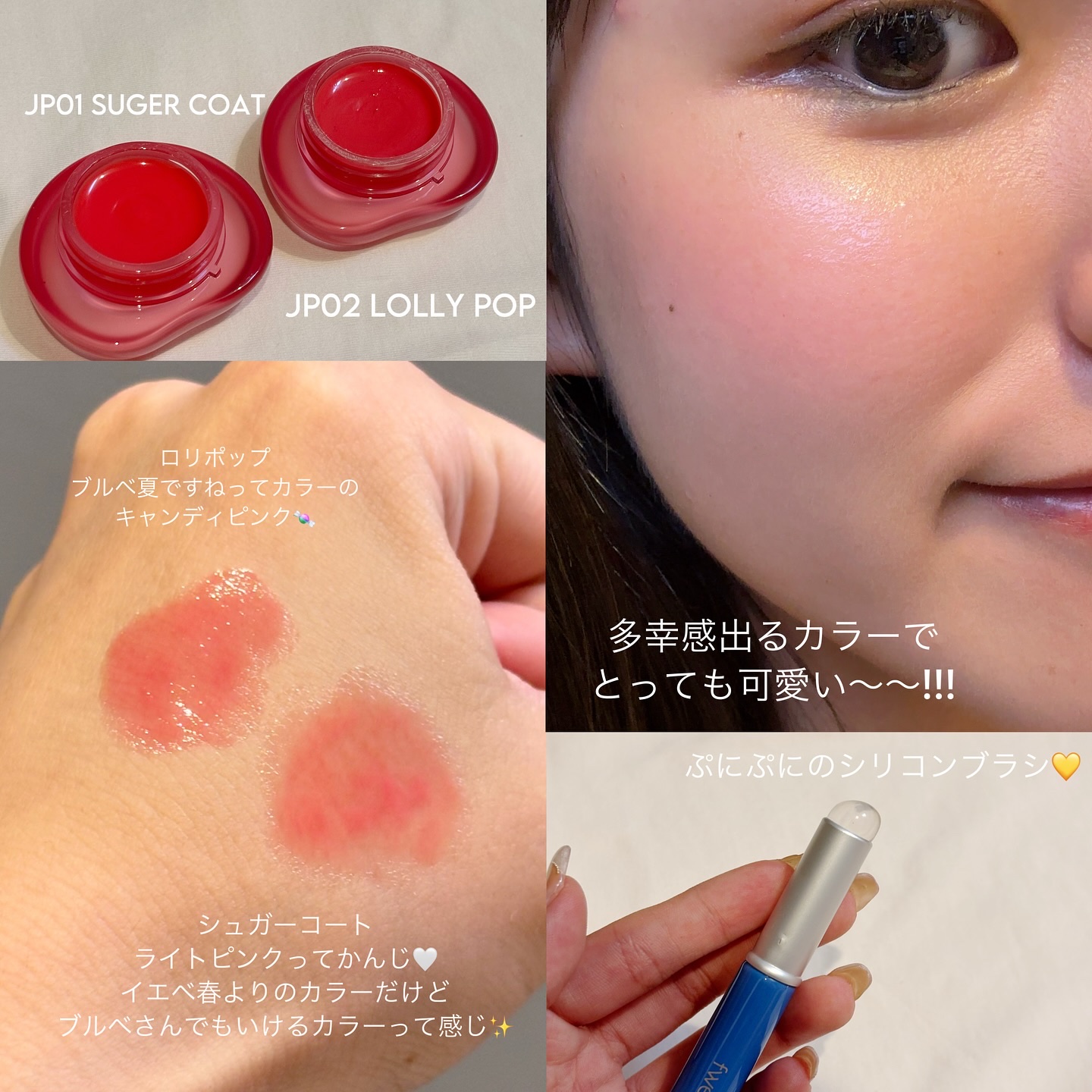 最近流行りのKPOPアイドルみたいなチークがこれ一つで簡単に再現出来ちゃう😍💖 ぷるぷるなテクスチャーで、食べちゃいたいくらいフルーティーな香り😳💖 ジュワッと透明感あるチークが作れちゃうの😍✨