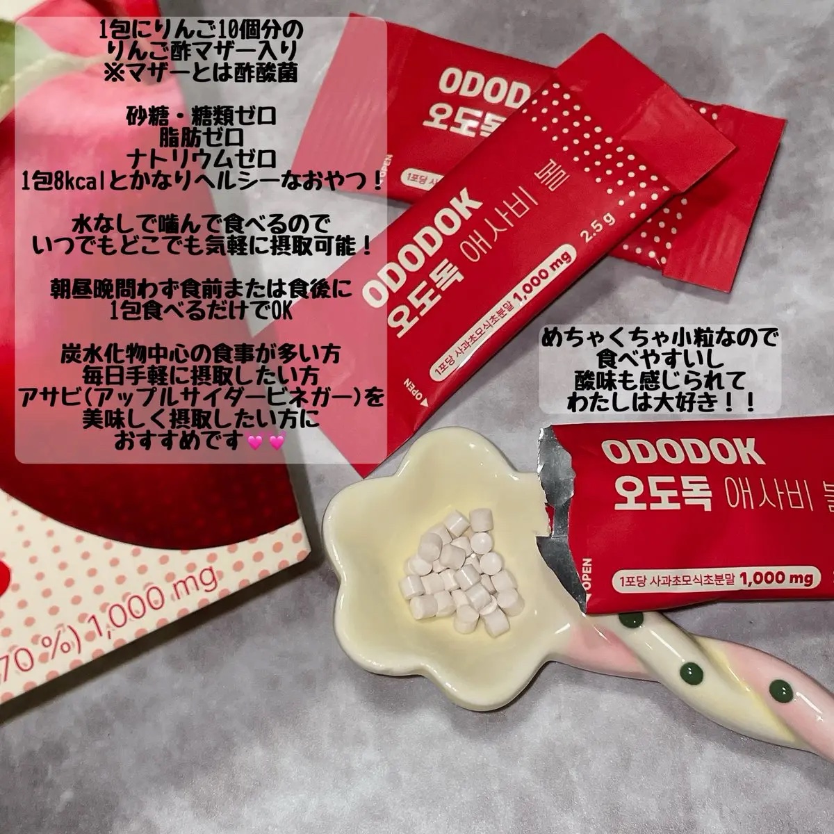 【話題沸騰中】韓国MZ世代が夢中の#リンゴ酢サプリ🍎✨オドドッアサビボール私は焼肉前にもサッと1本飲んでるよ!お菓子感覚で美味しく続けられるのが嬉しい💓リンゴ×酢🍎お酢系ラブな私には嬉しい味🤭 毎日の健康習慣や腸内環境のサポートにぴったり。持...