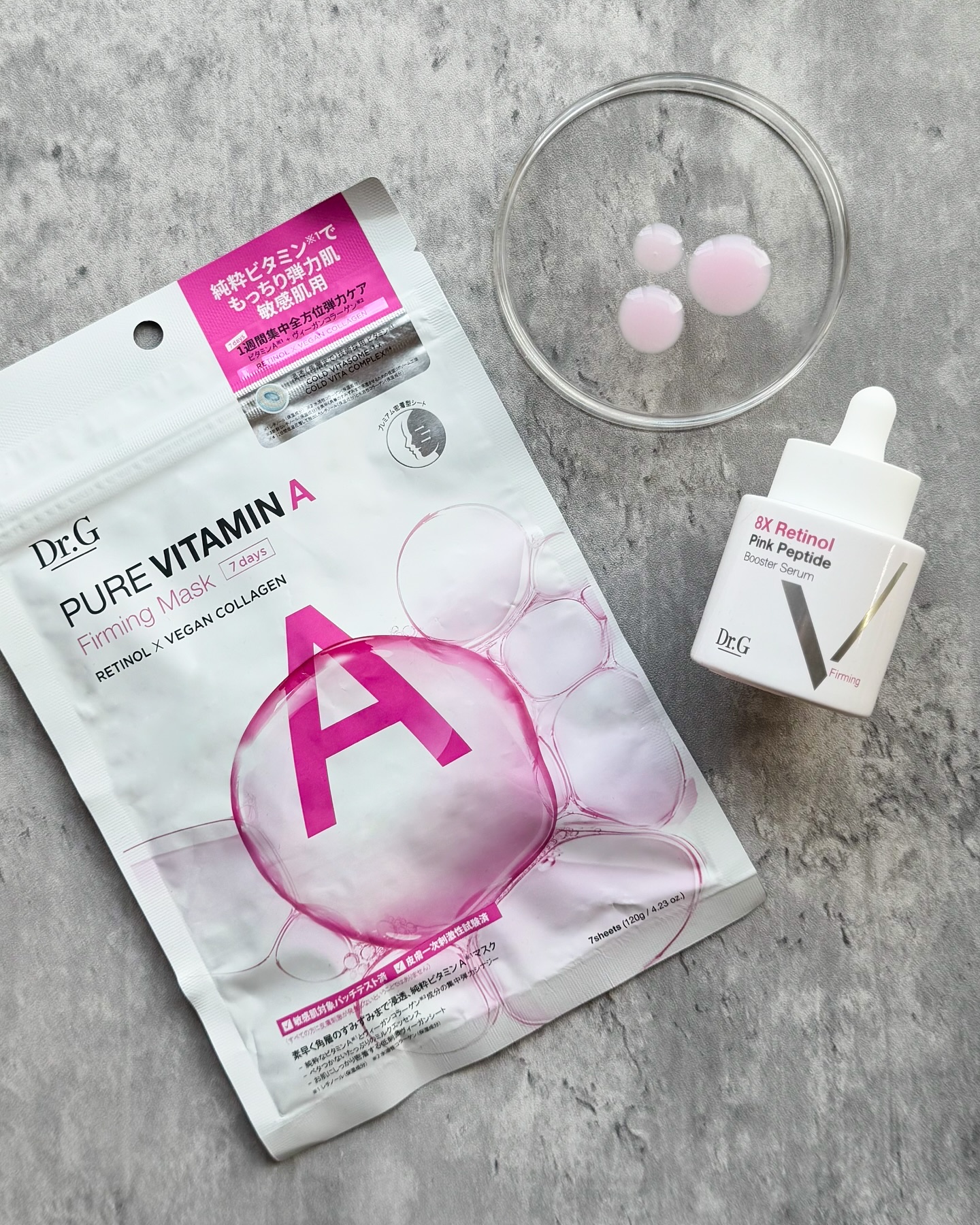 Dr.G(ドクタージー)🩷レチノールブースターファーミングセラム🩷ピュアビタミンAマスク新作のファーミングセラムは人工色素じゃないビタミンB12本来のピンクカラーでとろみのあるもちっとした美容液伸びは軽くしっとりとしたお肌に🫧マスクは厚手のシ...