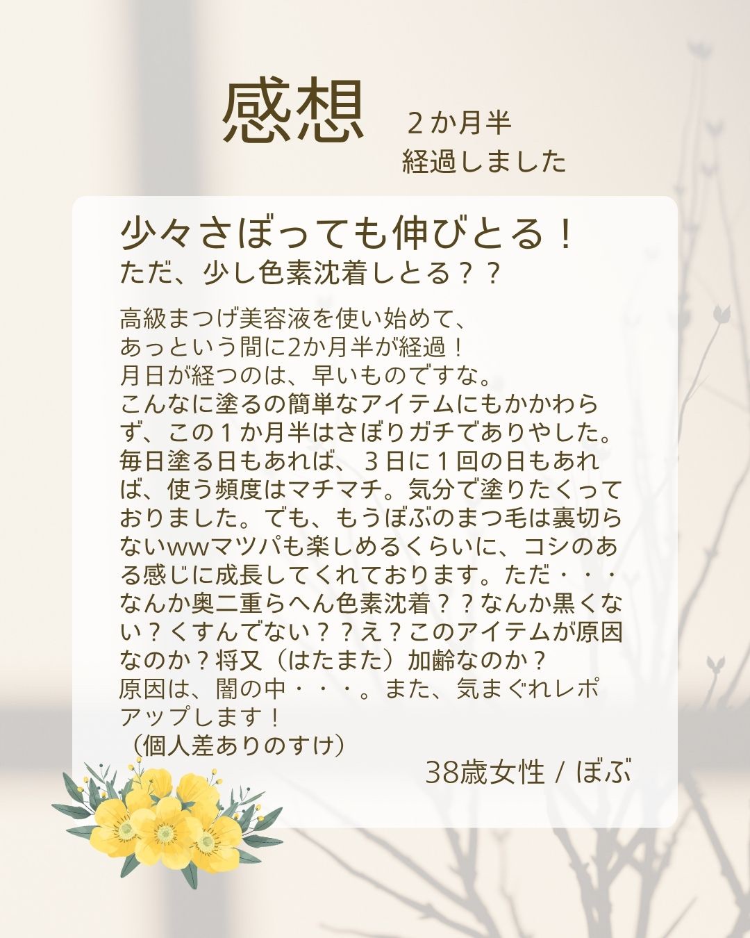 | スキンケアランキング第150位 | 塗るとつやっつやの ハリコシまつ毛にしてくれるので 本当におすすめですよ | 詳細を見る | |