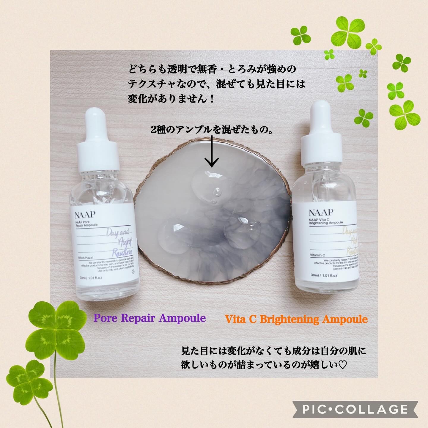 NAAP「ビタCブライトニングアンプル・毛穴リペアアンプル」をお試ししました☺️\初めて✨混ぜるアンプル❣️/こんな混ぜて使うアンプル初めてで新しい✨と思いました!自分のお肌悩みに応じてアンプルを混ぜて使うんです。私は毛穴とくすみが気になるの...