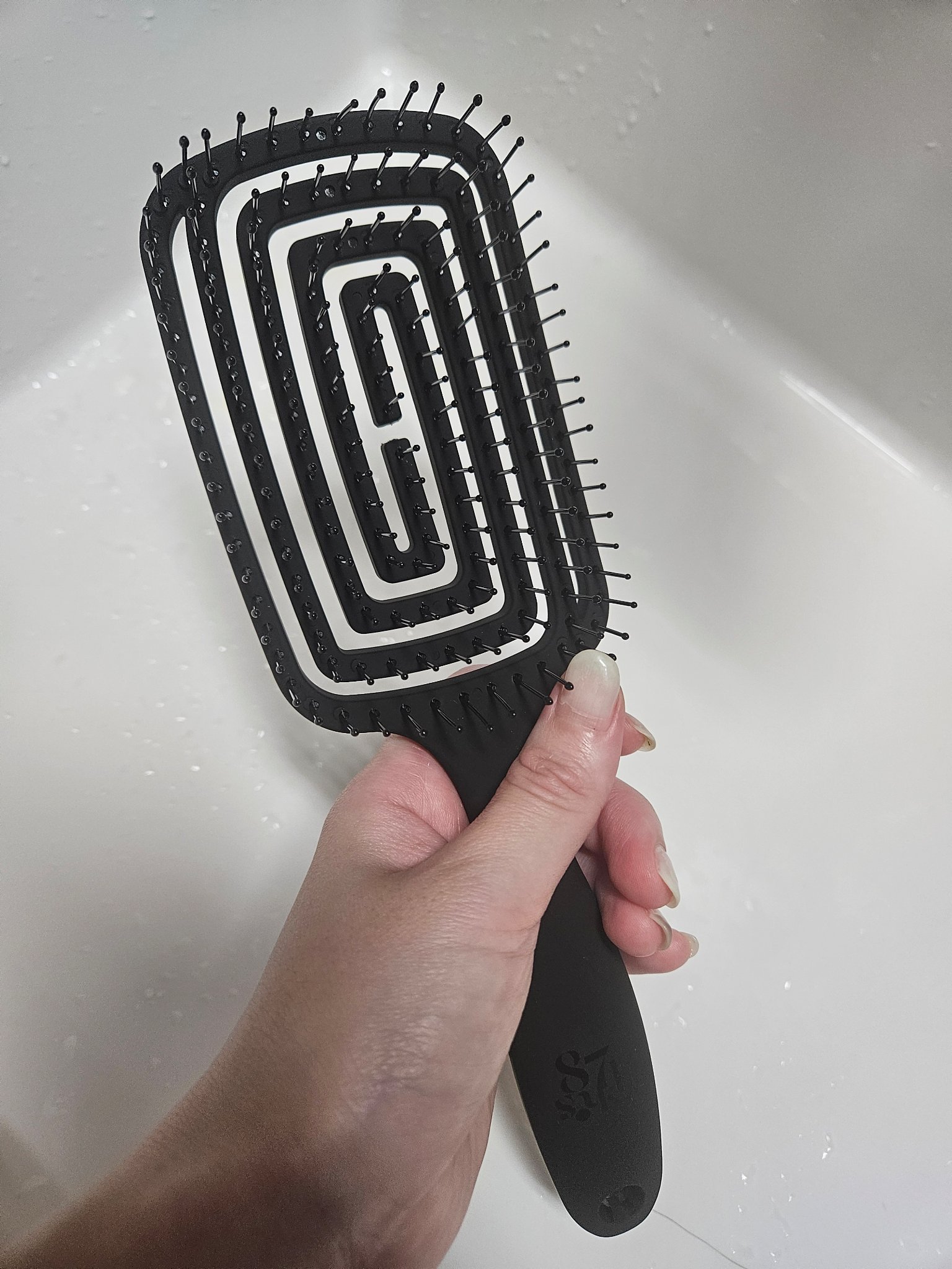 とかすだけで時短&サラツヤ髪✨ワンオペ育児•朝のバタバタの味方!ドライヤー時間をちょっとでも短くしたい人におすすめドライヤー時間を短くできるから熱によるダメージも減らせるよ!持ってみるとかなり軽くてブラシのピンも細め少しカーブしていて頭の形...