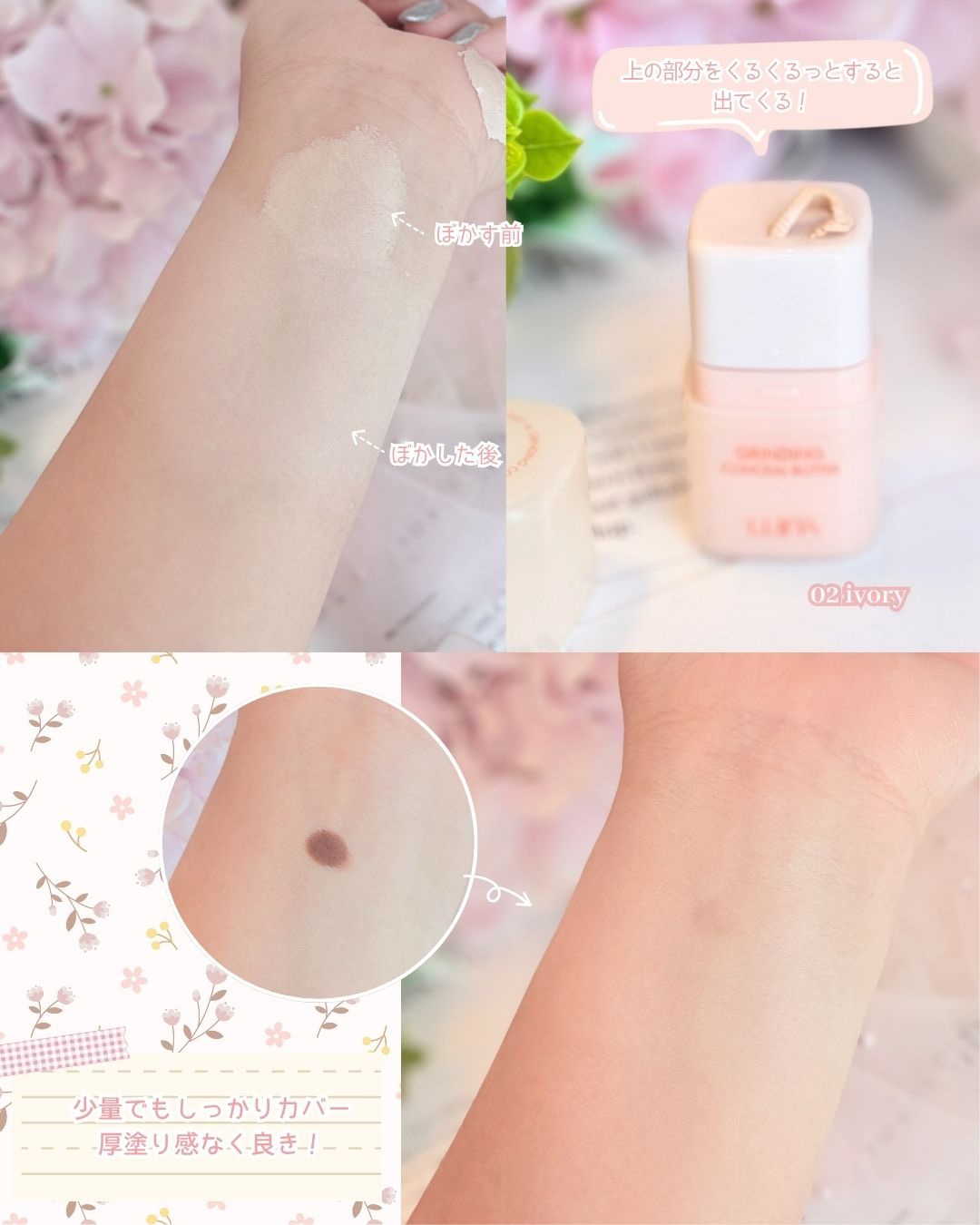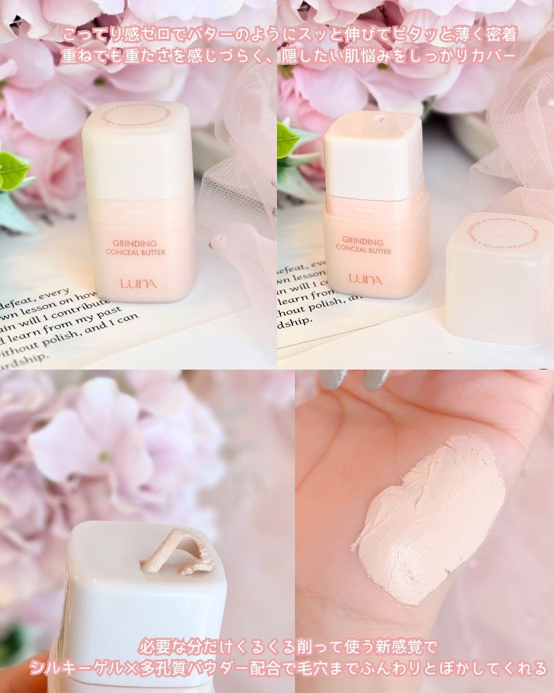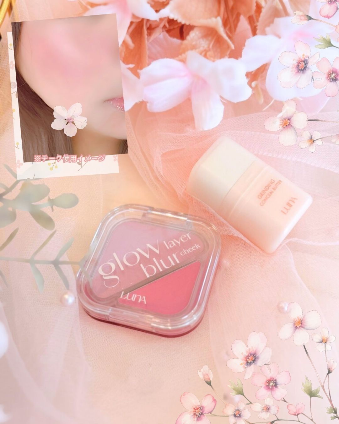 LUNAの[GRINDINGCONCEALBUTTER02IVORY&GLOWLAYERBLURCHEEK12MAUVERABBIT]をご紹介🐰💗コンシーラーは回すと出てきて使う分だけ出てくる!なめらかなテクスチャーでピタっと密着。カバー力あ...