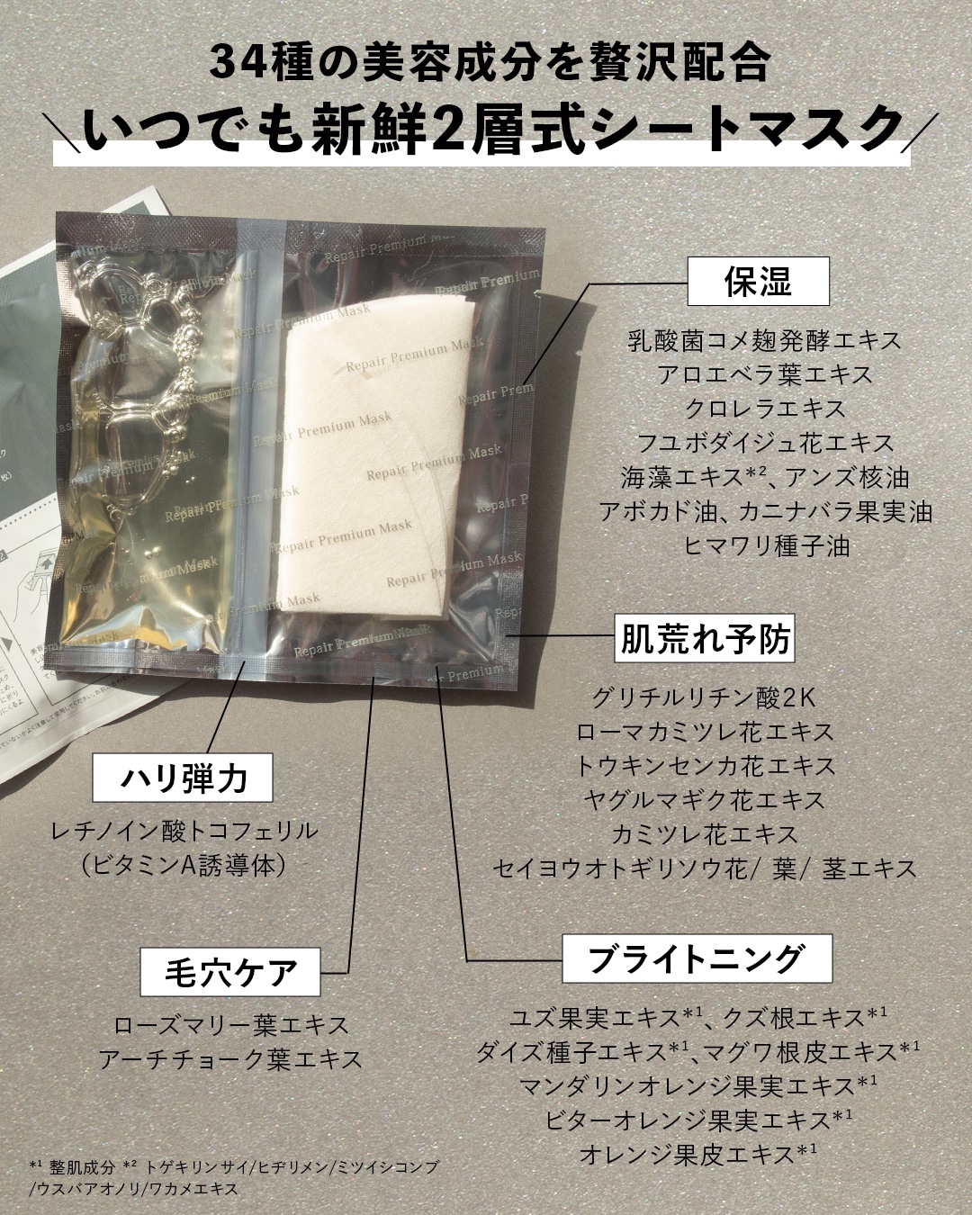 特別なケアが必要な日や、大事なイベント前の集中保湿ケアとして最適なシートマスク✨✨ 無農薬栽培米が原料の「乳酸菌コメ麹発酵エキス」やビタミンA・E・Kなど34種の美容成分を贅沢に配合し、たっぷりの潤いで肌を包み込みます。 美容液とマスクを分けたセパレート型のため、いつでも新鮮に使えるのと、混ぜるのが楽しい😊