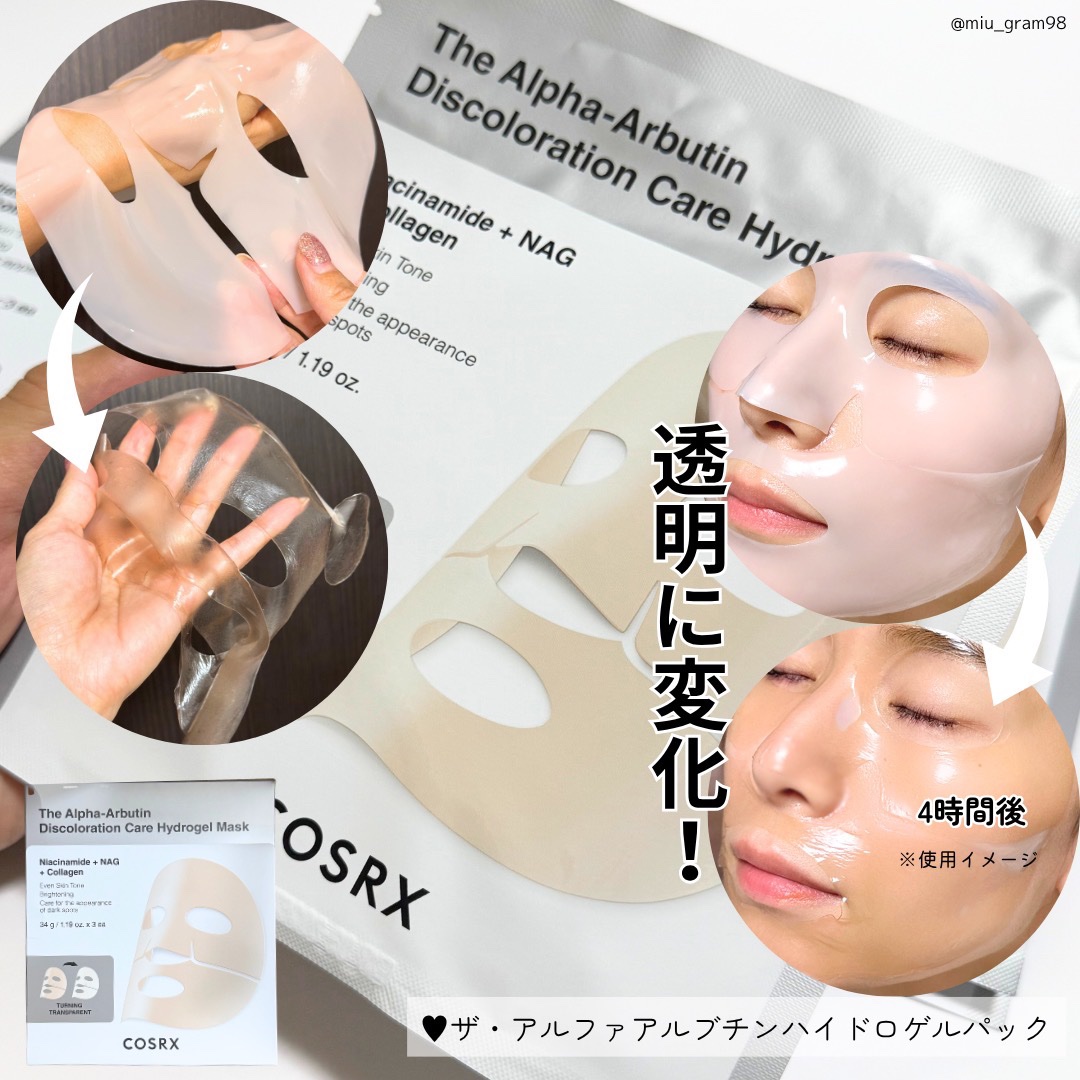 COSRXのRXザ・アルファアルブチン2ニキビ跡ケアセラムとRXザ・アルファアルブチンハイドロゲルパックを使ってみました💕RXザ・アルファアルブチンハイドロゲルパックはプルプルなゲルパックで、34gの美白セラムを固めたそう🌸30分後から透明に...