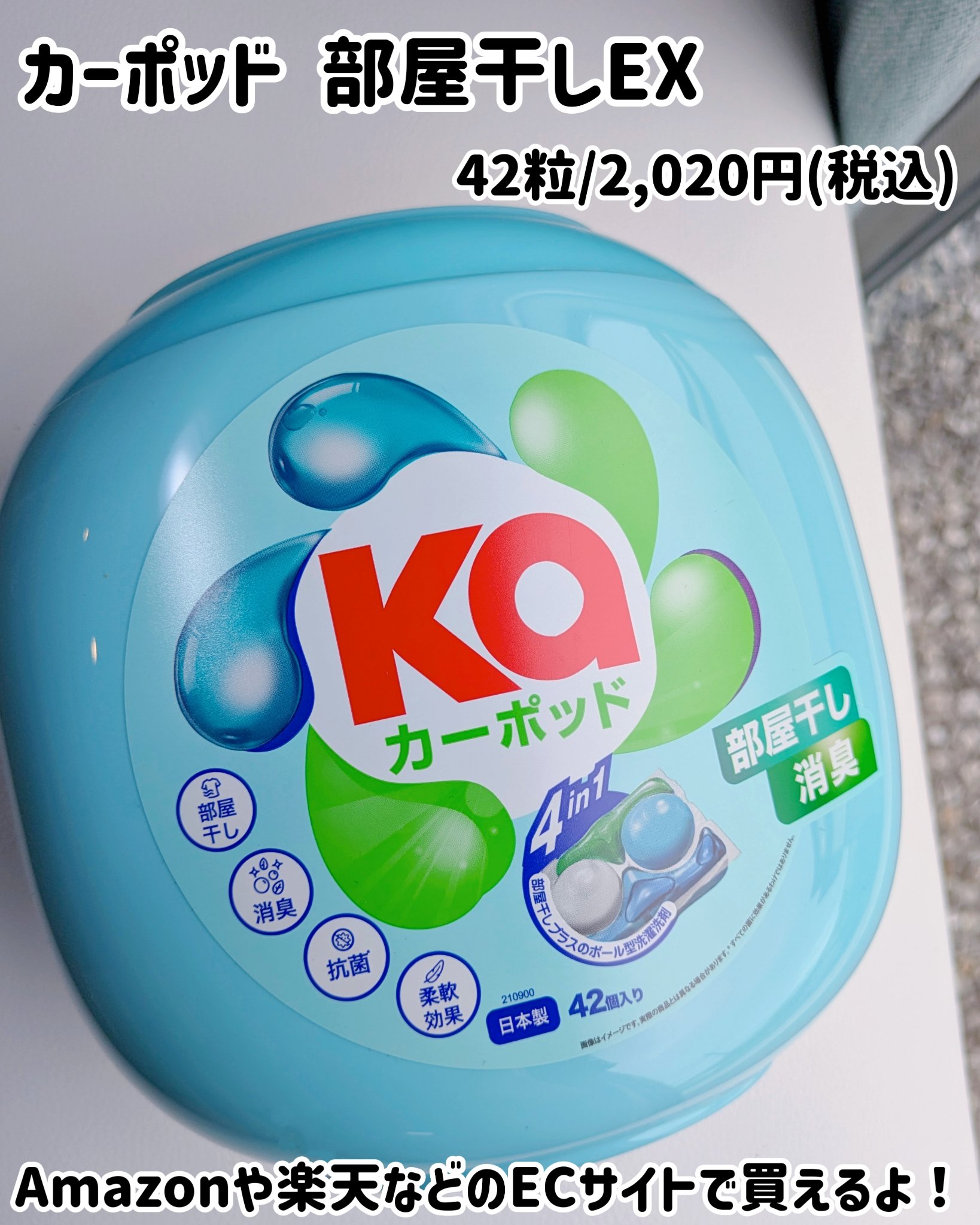 \梅雨の部屋干しにはこれ!/カーポッド部屋干しEX42粒/2,020円(税込)「カーポッド」は最先端技術の応用で、高い洗浄力*と消臭力*1を実現した4in1ボール型洗濯洗剤👕部屋干し特化タイプで部屋干しが増える梅雨にもぴったり!☔使い方も洗濯...