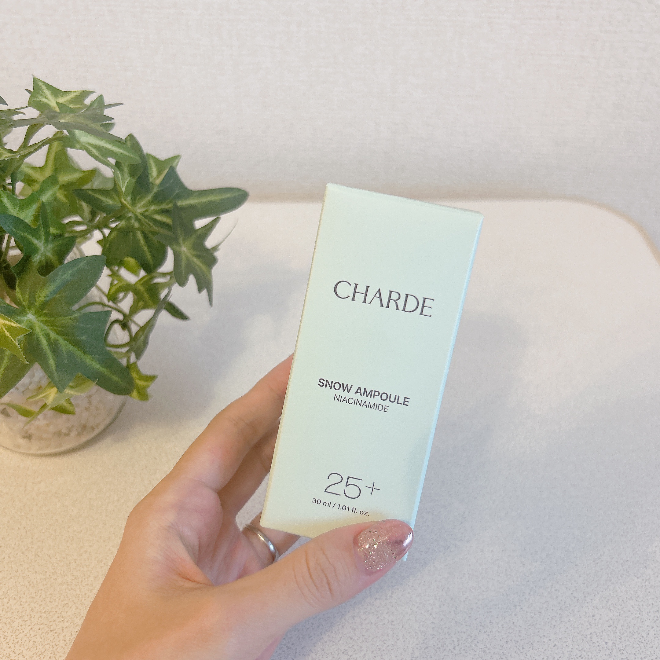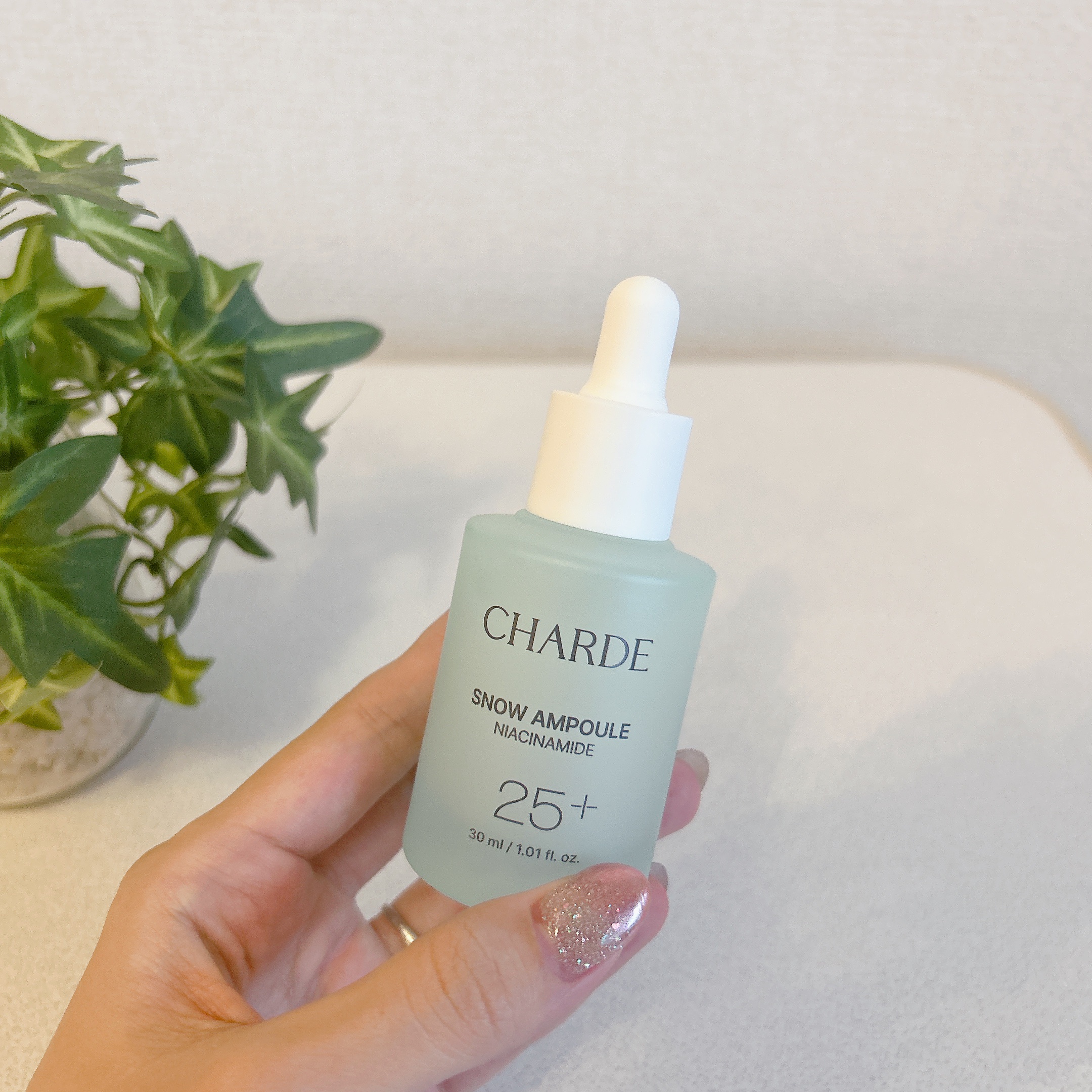 CHARDEスノーアンプル純度99パーセントのナイアシンアミドが25パーセント配合されているアンプル。爽やかな香りが良い香りです。白っぽい感じの色で、とろみがあり糸をひくようなテクスチャーで、伸びが良く肌馴染みが良いです。濃密なアンプルながら...