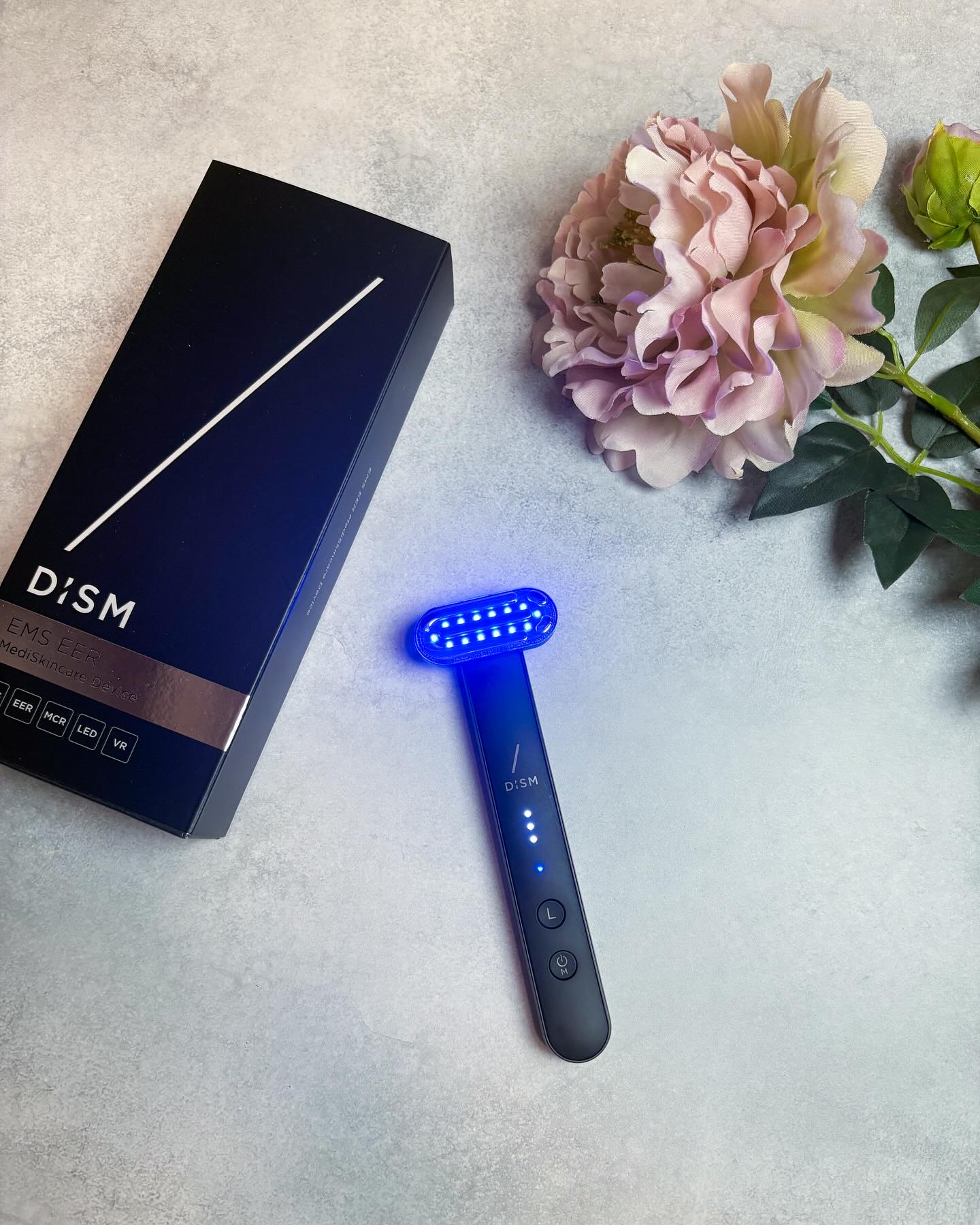 DISMから美容医療発想のメディケア美顔器が新登場💎✨ スリムで軽くてコンパクトサイズなのに多機能✨ 世界初*1うるおい浸透*2機能、EER*3モードが搭載されていて、使った後の肌仕上がりがすごく良くてゲットしてよかった美顔器だよ🖤🩶 8つも機能がある美顔器💎 EMS/EER*3 /RF*4/バイブレーション マイクロカレント/赤色LED/青色LED/温感