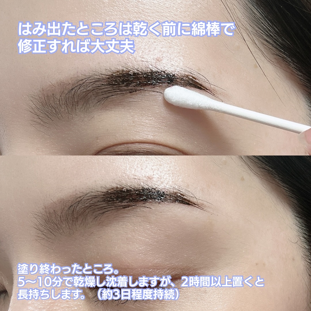 | 眉ティントランキング第5位 | 朝忙しい時も寝起きでも綺麗な眉のままなので、お泊りでも安心!3日ほど持続するので嬉しい! | 詳細を見る | |