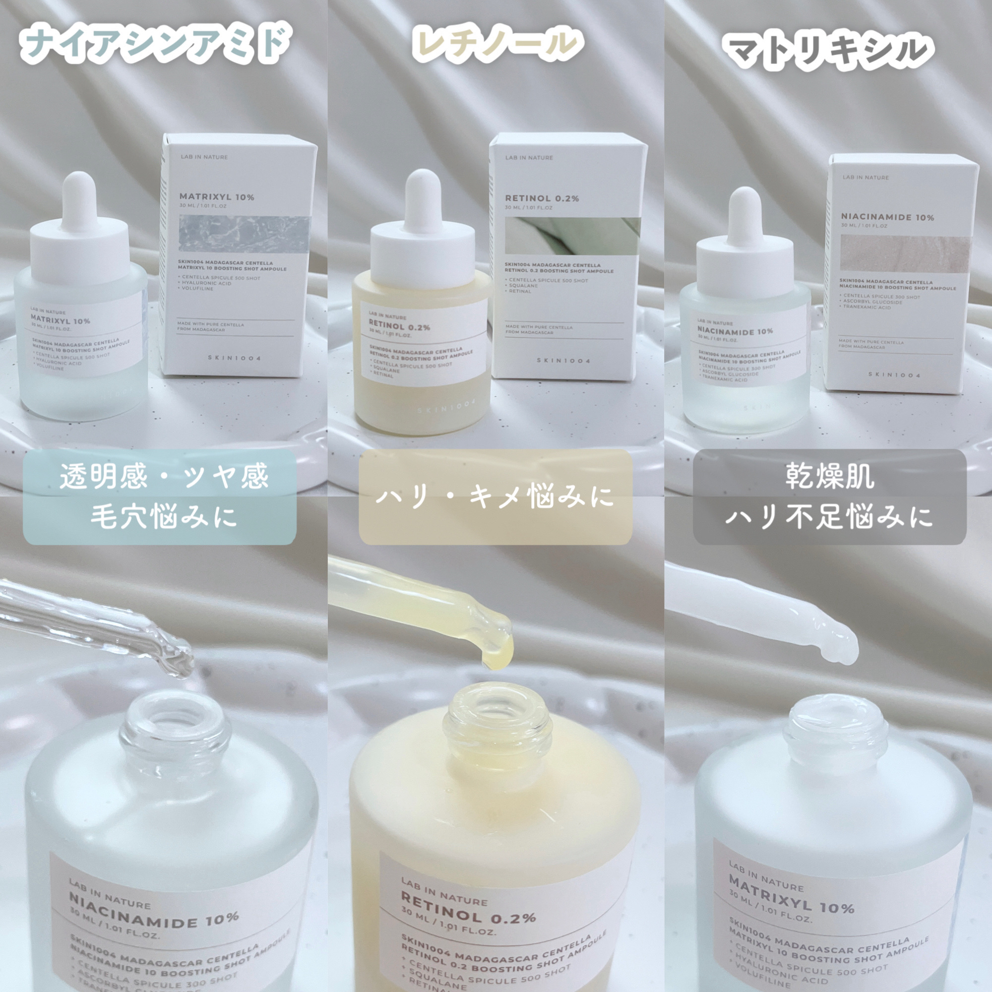 SKIN1004の美容液!新商品でたー!!!テクスチャー全部しっかりめ!!!SKIN1004マトリキシル10ブースティングショットアンプルナイアシンアミド10ブースティングショットアンプルレチノール0.2ブースティングショットアンプル肌悩みっ...