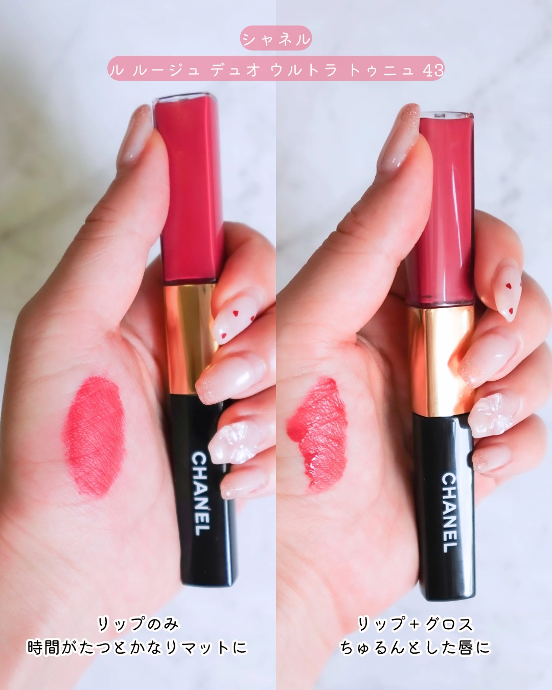 これぞデパコスの本気【落ちないリップの決定版】👄✨️ついに全国販売スタートした、話題の「シャネルルルージュデュオウルトラトゥニュ」💄ブルベさんに激推しの2色を使って徹底比較&色持ち&質感レビューしたよ🫶🏻CHANEL(シャネル)ルルージュデュ...