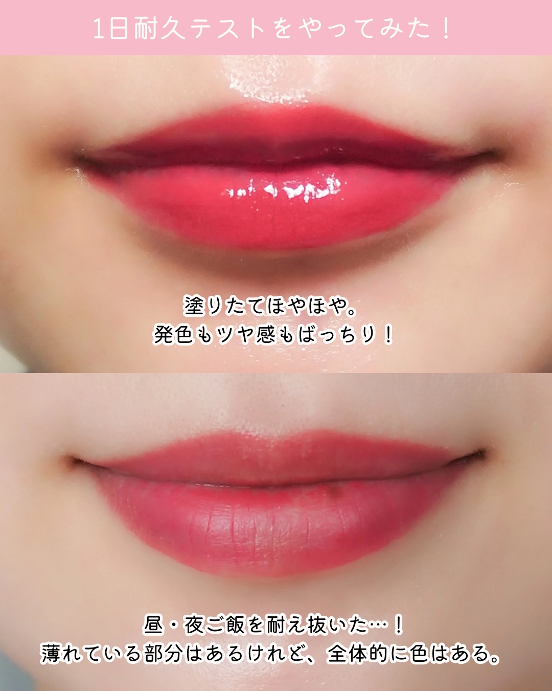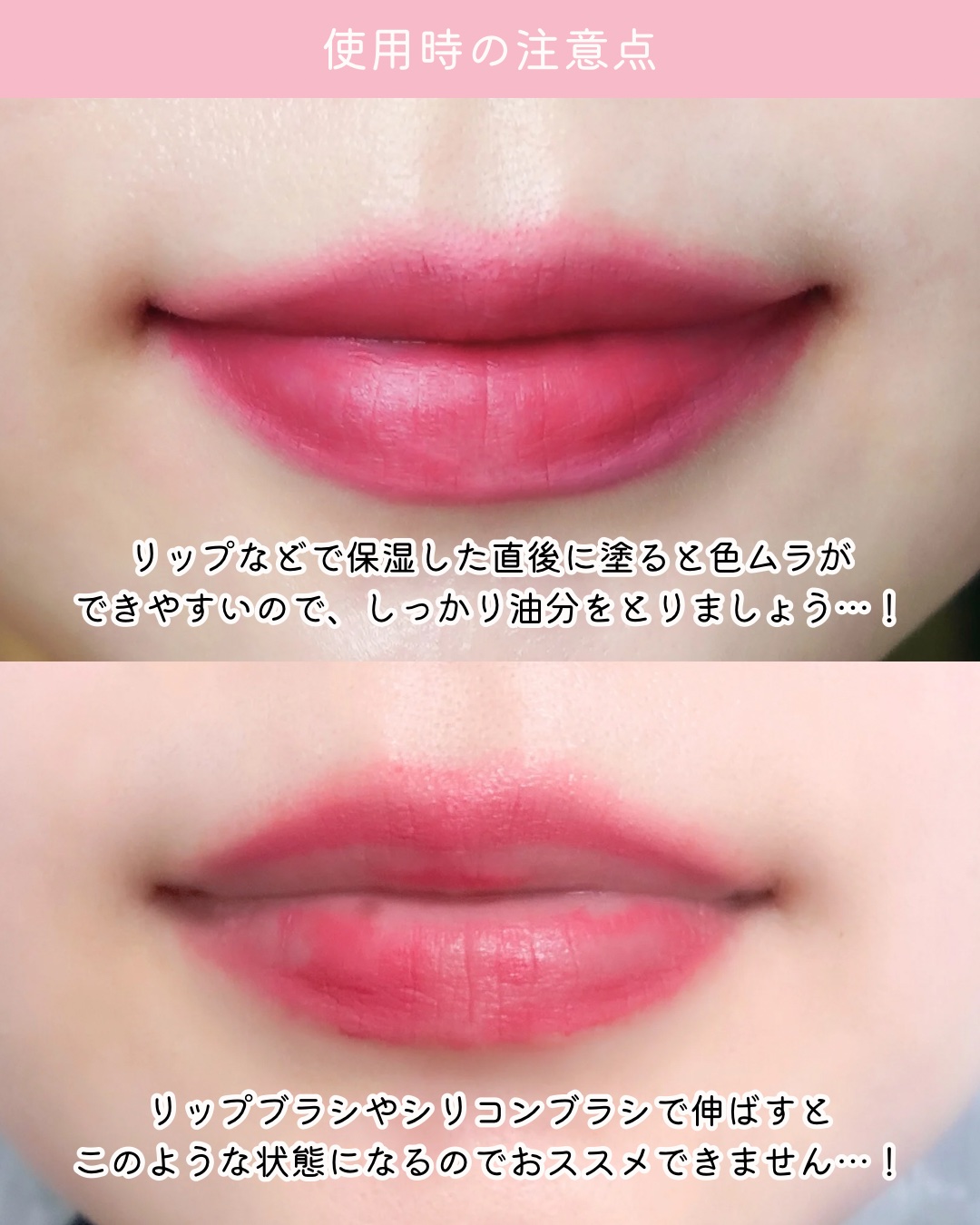 むっちむちでちゅるんとした唇に仕上がります! 色はわりとしっかりめに付くので、顔タイプフェミニン(大人顔)の私でも色が薄い!ということにはなりませんでした。 クリアウィンターの私が特にお気に入りなのは05です♡ 発色も良く、唇の縦皺も気にならないので見栄えが良い…! 診断後に何買えばいいかな?と迷っている人はこのリップを候補に入れてあげてください💄