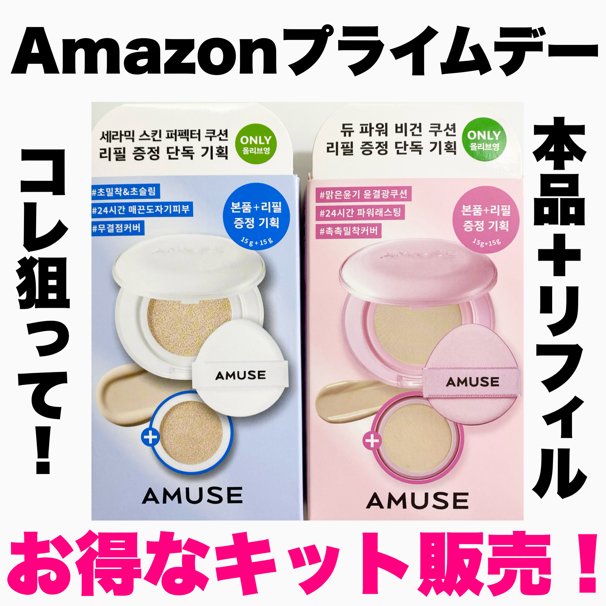 AMUSEAMAZONプライムデーでお得に買える👍AMUSE限定企画セット✨🤍セラミックスキンパーフェクタークッション1.5ナチュラル8種のペプチドやヒアルロン酸&コラーゲン配合で、肌にうるおいを与え、マットな仕上がりなのに乾燥しにくい使用感...