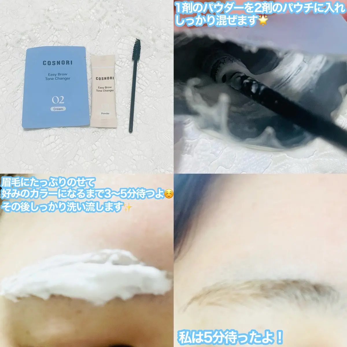 COSNORI様よりイージーブロウトーンチェンジャーを商品提供いただきました💕ほんと簡単に染まったよ😆(無くなったように見える所は金髪...)アイブロウの発色がとっても綺麗に見えてよき〜🥰#COSNORI#コスノリ#Qoo10#イージーブロウ...