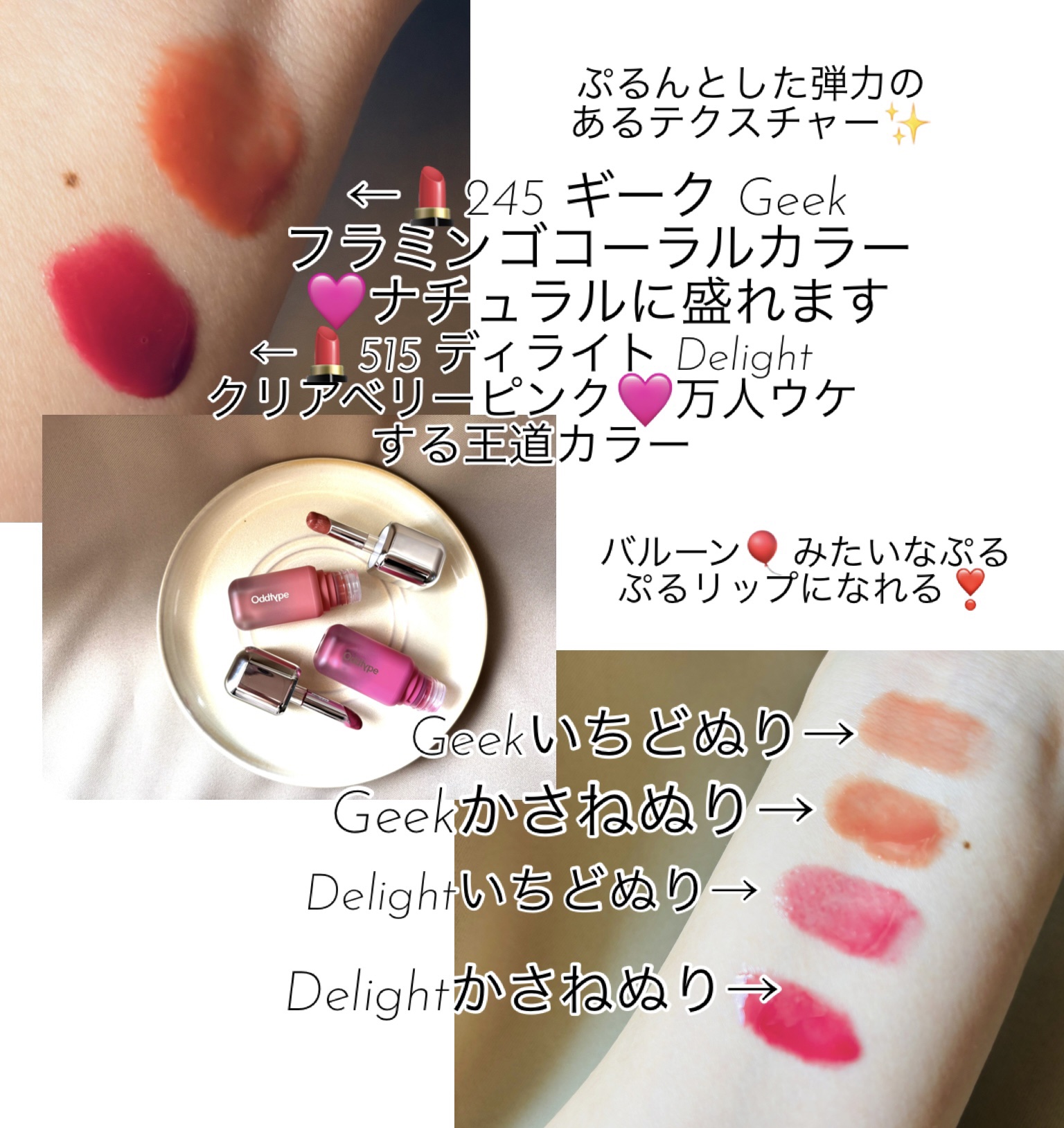 #PRoddtype様(@oddtype_jp) ■アンシーンバルーンティント カラー:245Geekカラー:515Delight今年の春にMUSINSAbeauty様のポップアップショップを訪問してからグループのブランド商品がぜんぶとてもか...