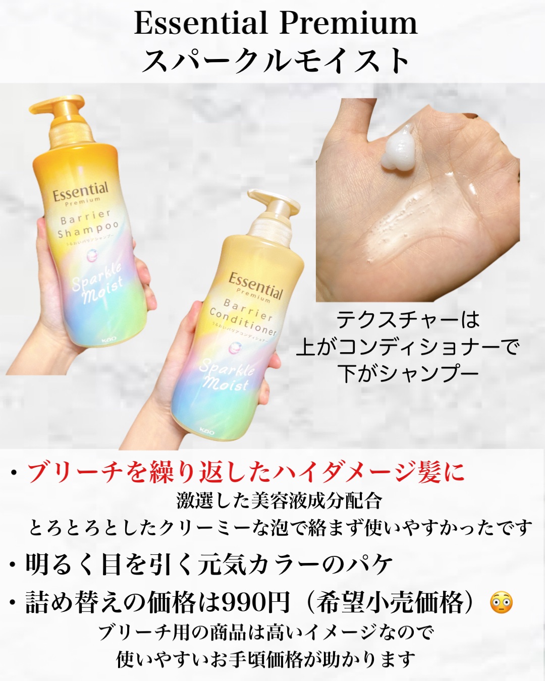商品詳細情報エッセンシャル エッセンシャルプレミアム バリアシャンプー・コンディショナー スパークルモイスト