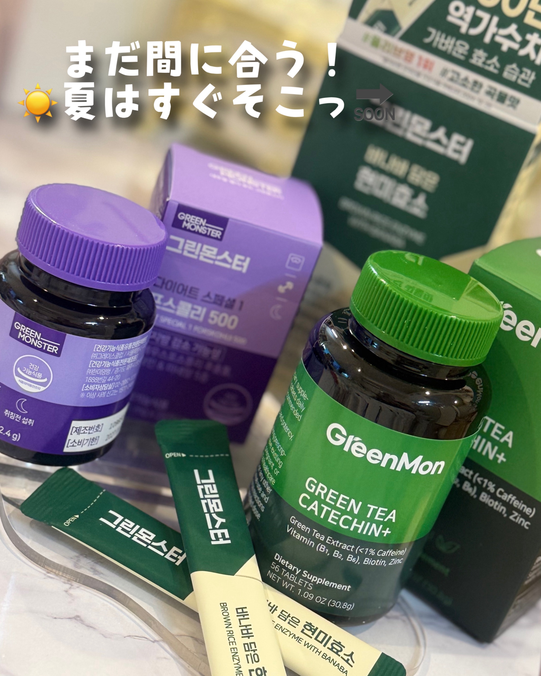 #PR\自然派で続けやすい!/最近話題の【グリーンモンスター】3種を3週間続けてみました🌿✔︎緑茶カテキンは、お通じ&脂肪対策ができて、飲み始めて数日でお腹の調子が◎✔︎バナバ玄米酵素は香ばしいアーモンド味で食後が楽しみに!血糖値ケアにも。✔...