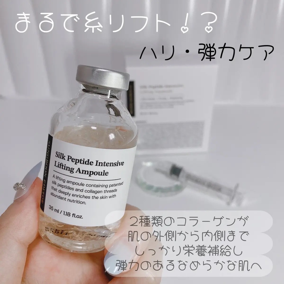 シルクペプチドインテンシブリフティングアンプル﹌﹌﹌﹌﹌﹌﹌﹌﹌﹌13種のペプチド×シルク水48%金色のコラーゲン糸配合💫プレエイジングケアにぴったりな高級感のあるパッケージにも気分が上がる🎶斬新なアプリケーターで新感覚のアンプル体験🕊️金色...