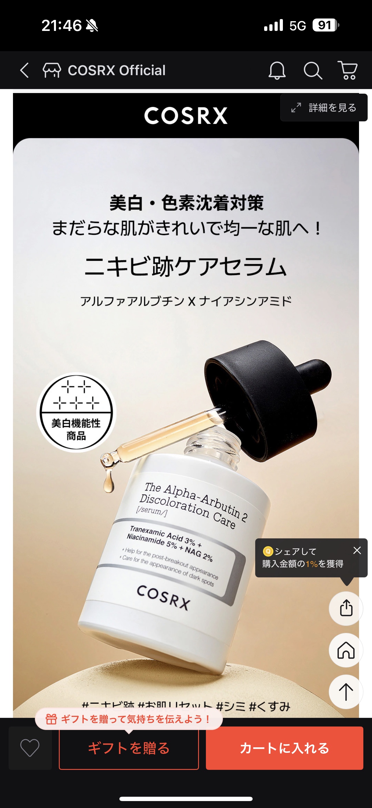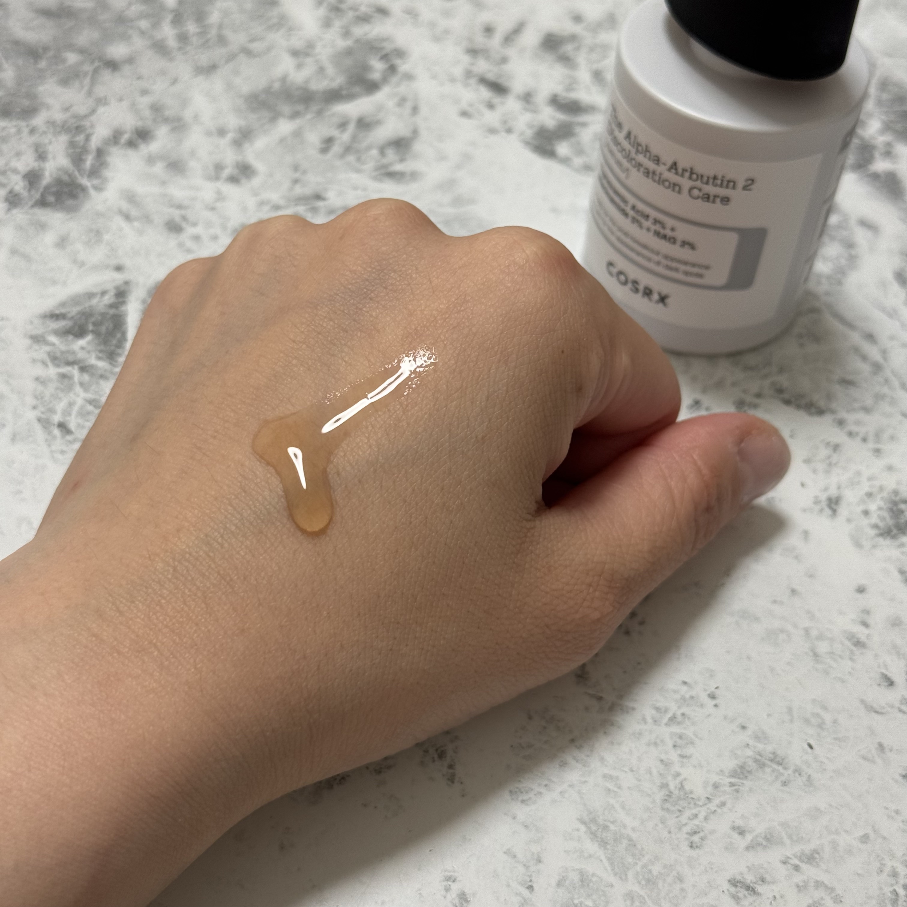 COSRXシミ・トラブル跡・色素沈着などをケアし明るい肌へと導くアイテム。【RXザ・アルファアルブチン2ニキビ跡ケアセラム】茶色のウォータリーテクスチャー。みずみずしい使用感で肌にスーッとなじみベタつきは感じません。毎日重ね付けしながら肌...