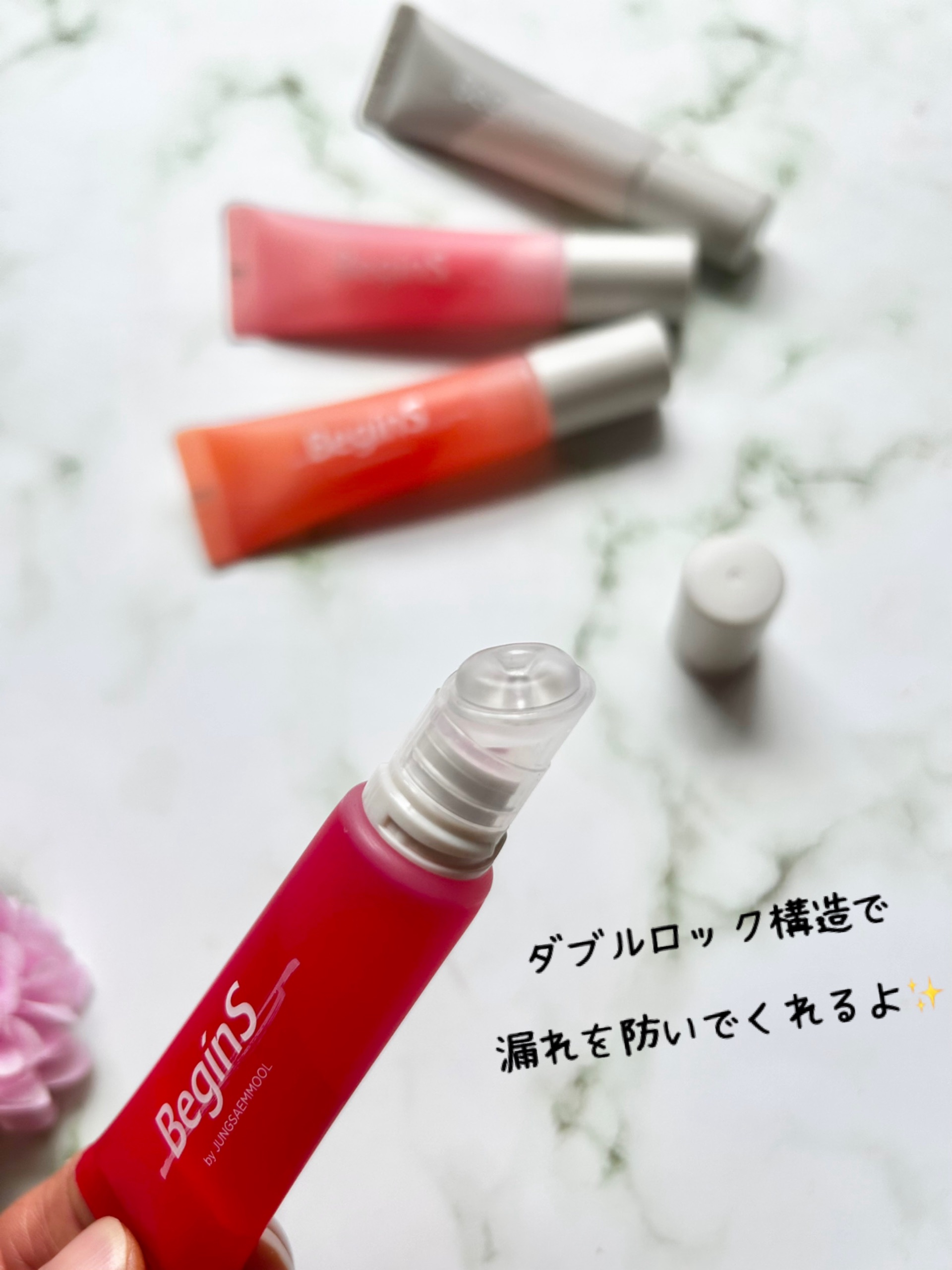 まるでぷるぷる果実のくちびる🍓🍑🍇Begins👄リップケアカラーオイルぷるっとみずみずしいフルーツカラーでほんのりナチュラルでぷっくりした唇に仕上がるよ✨ダブルロッキングキャップで液漏れも防止してくれるからポーチに入れても安心🤍ぷにぷにシリコ...