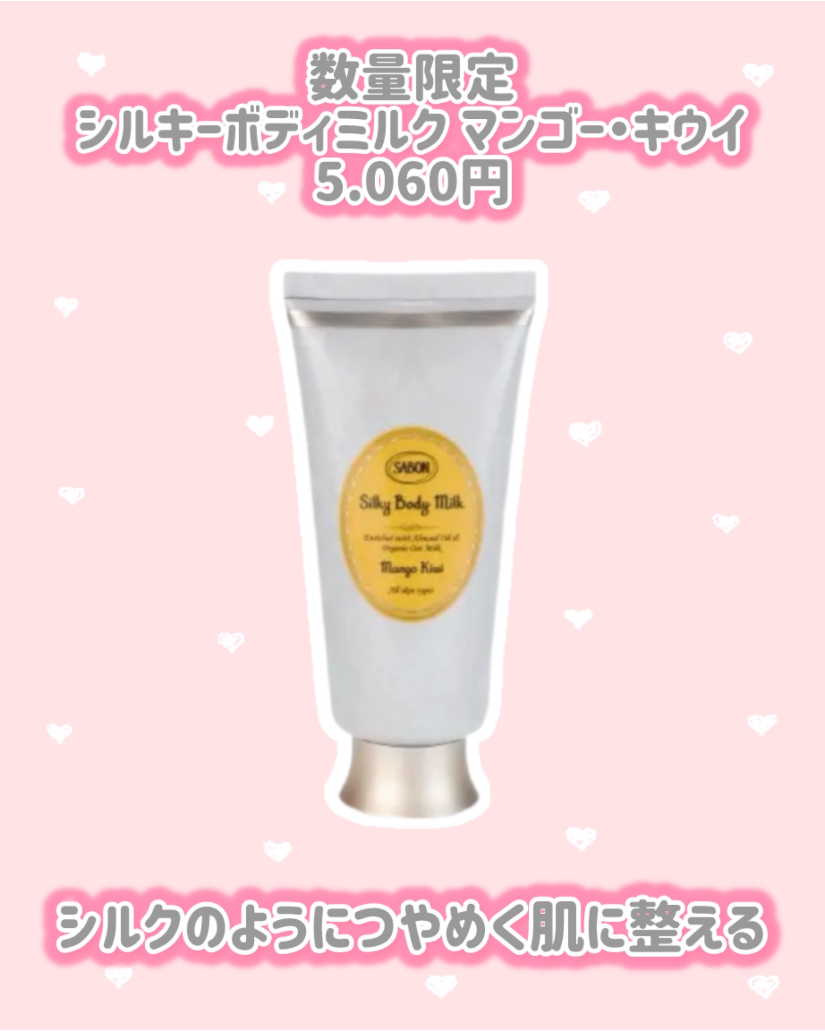 | シルキィの名の通り、本当にすべっすべのサラサラしたお肌に♡ケアしながら香りにすごーく癒される | 詳細を見る | ||
