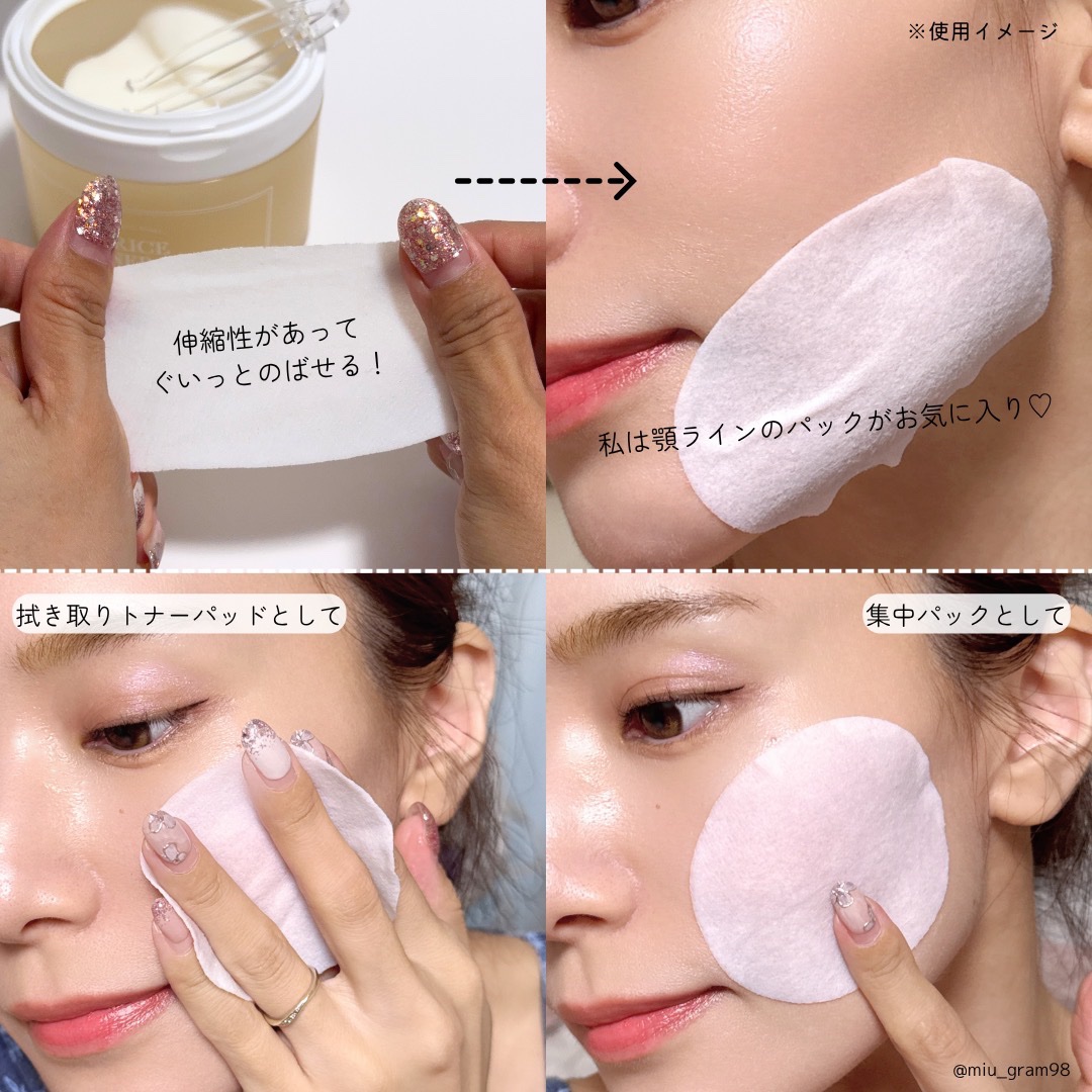 𓍯ライストナーパッド⌇I'mfrom豊富な栄養成分がたっぷり含まれた驪州(ヨジュ)米コンプレックス配合のおもちパッド𓂃🌾🤍もっちりやわらかい3重レイヤー生地がおもちみたいにぐんぐん伸びてぴたっと高密着🤲ライストナーがひたひたに染み込んでいて付...