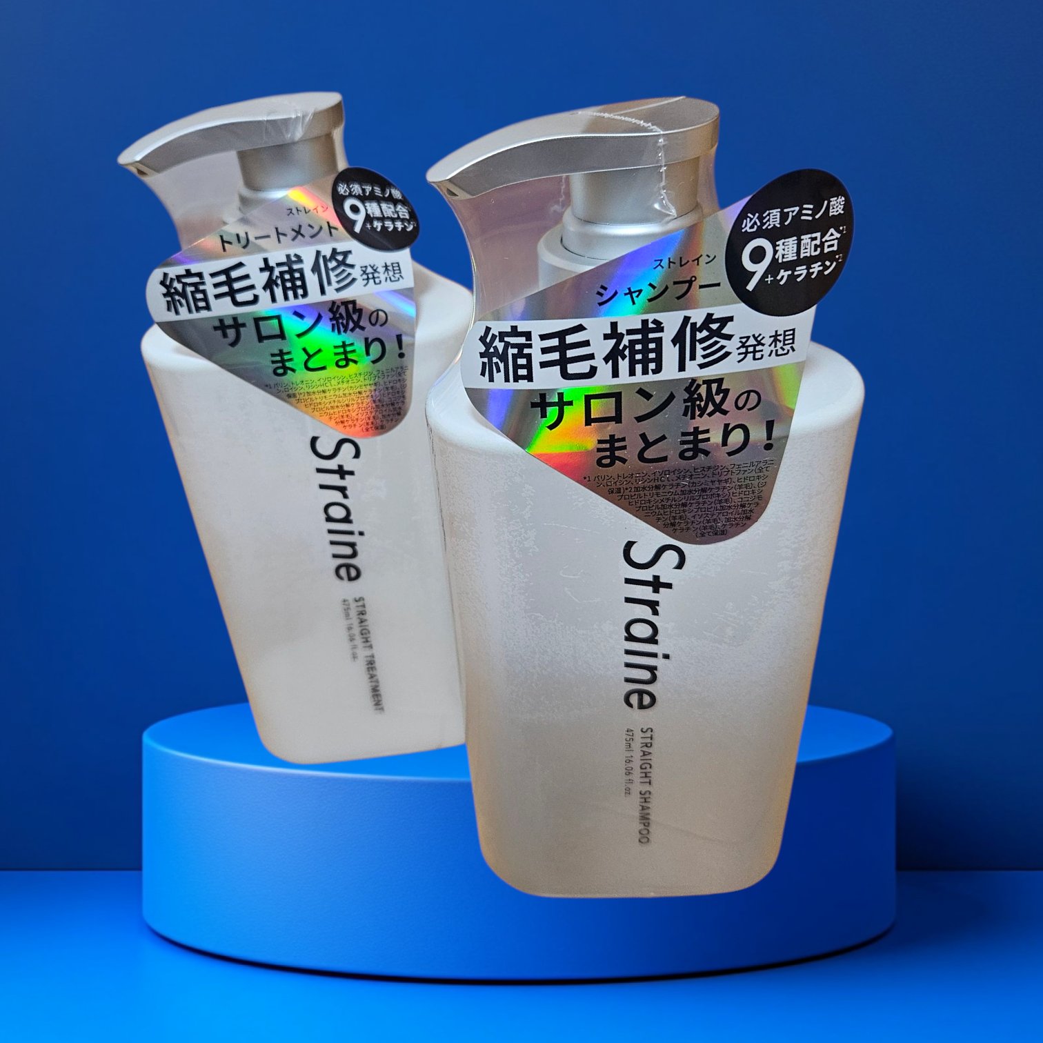 - “straight(真っ直ぐ)”と“line(線)”を組み合わせた造語「Straine」は、まるで一本の美しいラインのようにしなやかで整ったストレートヘアをイメージ。理想のストレート質感を目指し厳選した補修成分と内部構造に着目した独自の補修設計技術で、乾燥によるクセ・うねりケアに悩むすべての人へ、新しい自分との出会いをお届けする新ヘアケアブランドです。  ️髪の内部構造に着目した、独自の「トリプルストレート処方」 縮毛補修発想。髪の内側の構造に着目し、まっすぐまとまる髪を科学的に研究し導きだした3つの処方。 髪の構造を深く理解したアプローチで髪質を再整*1し、潤いを保ちながら、滑らかな指通りへ。 9種の必須アミノ酸*2と7種のケラチン*3を贅沢に配合し、髪内部を補修をしながら、理想の“シルクストレート質感*4 ”を目指します。  ️POINT01|内部補修 -髪内部のうねり原因を補修。まっすぐな髪を目指して。 髪のうねりの原因となる乾燥による内部構造の乱れを、必須アミノ酸*2を含むアミノ酸と密度補強成分「ジマレイン酸」*5で補修。さらに、縮毛補修発想から生まれた成分「トステア®」*6を配合し、ハリ・コシのあるストレート髪を目指します。  ️POINT02|シルク質感 ‐ダメージを立体補修 ダメージによって生まれた髪内部の空洞“ダメージホール”を、保湿成分である7種類の分子量の異なるケラチン*3が髪芯部まで浸透し、立体的に内側まで補修。PPT系高級洗浄成分*7が、髪1本1本を洗い上げ、しなやかで指通りなめらかな“シルクタッチ”の髪へと仕上げます。  ️POINT03|うるおいバリア ―湿気や熱から髪を守る 湿気によるうねりを防ぐために、5種のセラミド*8とサクラン®*9で髪内部の水分をキープ。さらに、熱に反応してバリアを形成する「γ-ドコサラクトン」*10と、キューティクルを保護する「擬似18-MEA」*11が外的ダメージから髪を守り、湿気から髪を保護しながらストレート状態を長時間キープします。  ️凛とした透明感が香り立つホワイトブロッサムの香り サロン帰りのような心地よさを、毎日のバスタイムに。フレッシュなフローラルと果実の爽やかさが調和した、みずみずしく上品な香りです。 *1 うるおいにより、髪の質感を整えること *2 バリン、トレオニン、イソロイシン、ヒスチジン、フェニルアラニン、ロイシン、リシンHCl、メチオニン、トリプトファン(全て保湿) *3 加水分解ケラチン(カシミヤヤギ)、ヒドロキシプロピルトリモニウム加水分解ケラチン(羊毛)、(ジヒドロキシメチルシリルプロポキシ)ヒドロキシプロピル加水分解ケラチン(羊毛)、ココジモニウムヒドロキシプロピル加水分解ケラチン(羊毛)、イソステアロイル加水分解ケラチン(羊毛)、加水分解ケラチン(羊毛)、ケラチン(全て保湿) *4 うるおいによる、なめらかな質感のこと *5 ジマレイン酸プロピレンジアンモニウム(保湿) *6 アミノエチルチオコハク酸ジアンモニウム(保湿) *7 ココイル加水分解ケラチンK(羊毛)(洗浄) *8 セラミドNG、セラミドAP、セラミドAG、セラミドNP、セラミドEOP(全て保湿) *9 スイゼンジノリ多糖体(保湿) *10 (保湿) *11 セテアラミドエチルジエトニウム加水分解コメタンパク、ラノリン脂肪酸(保湿)